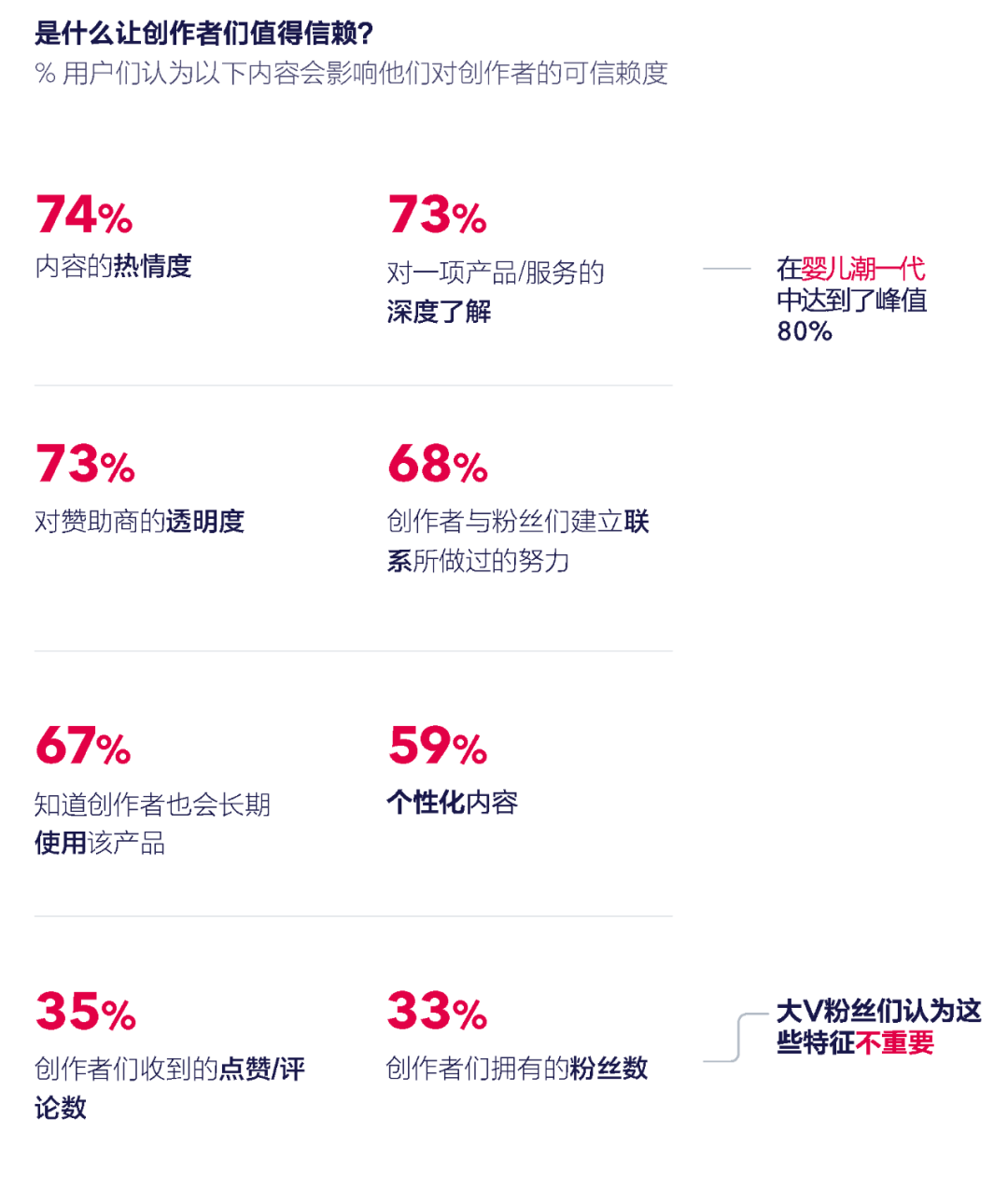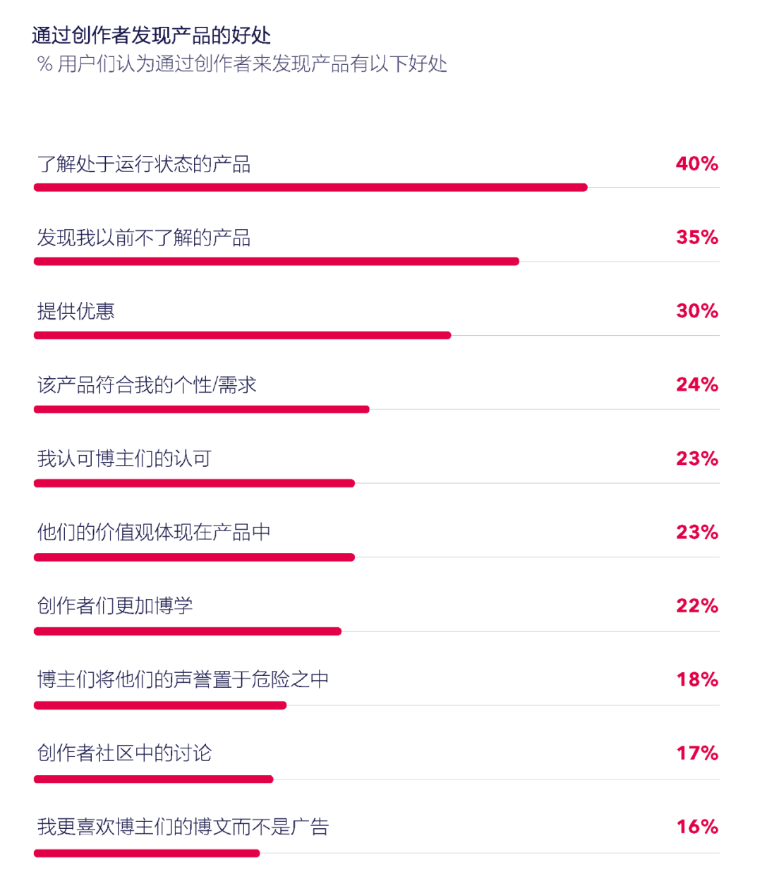 近五分之二通过创作者发现品牌的粉丝表示,他们重视影响力博主的代言所带来的信任