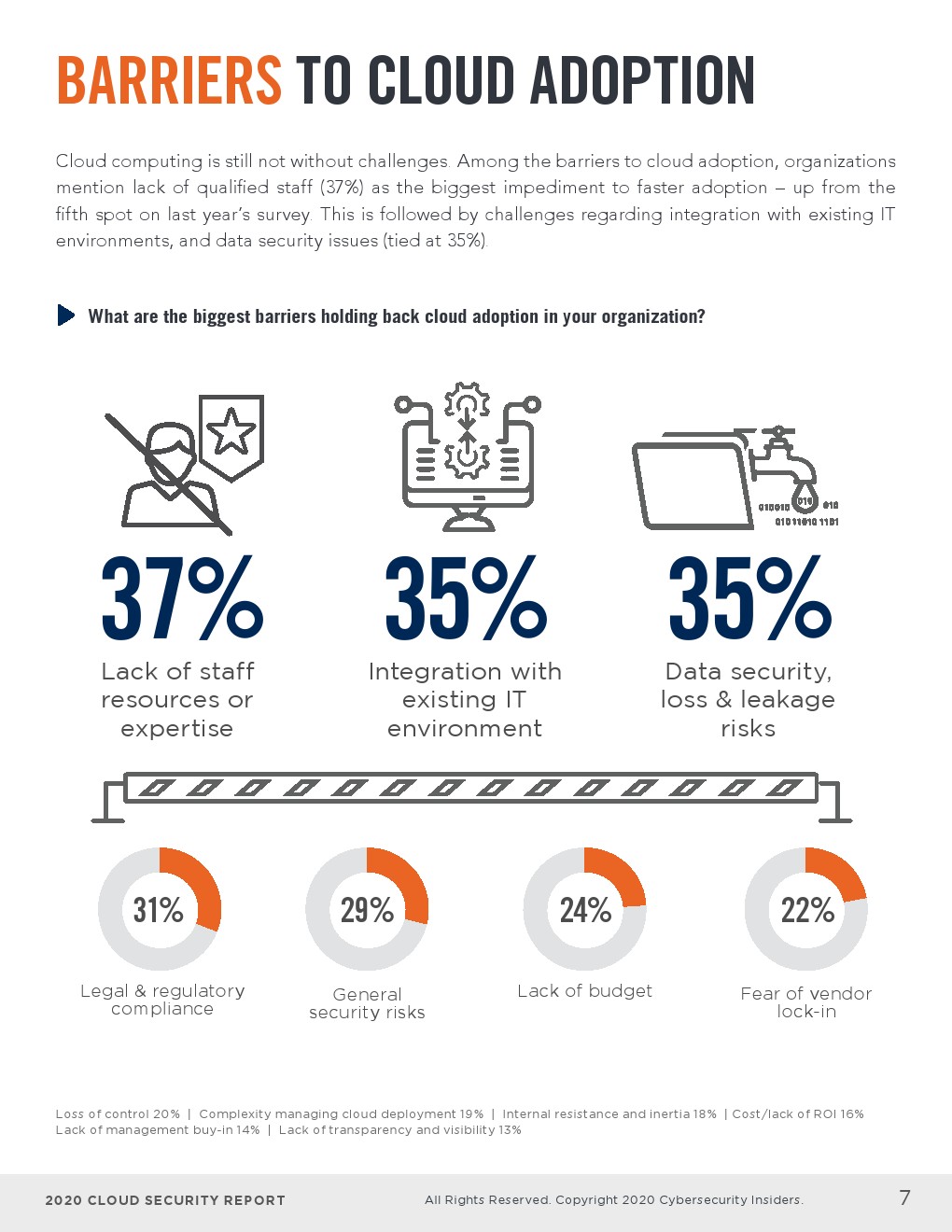 - 在云采用的主要障碍中,企业最可能提到缺乏合格的员工是加快采用的最大障碍(37%),而这项在去年的调查中排在第五位。