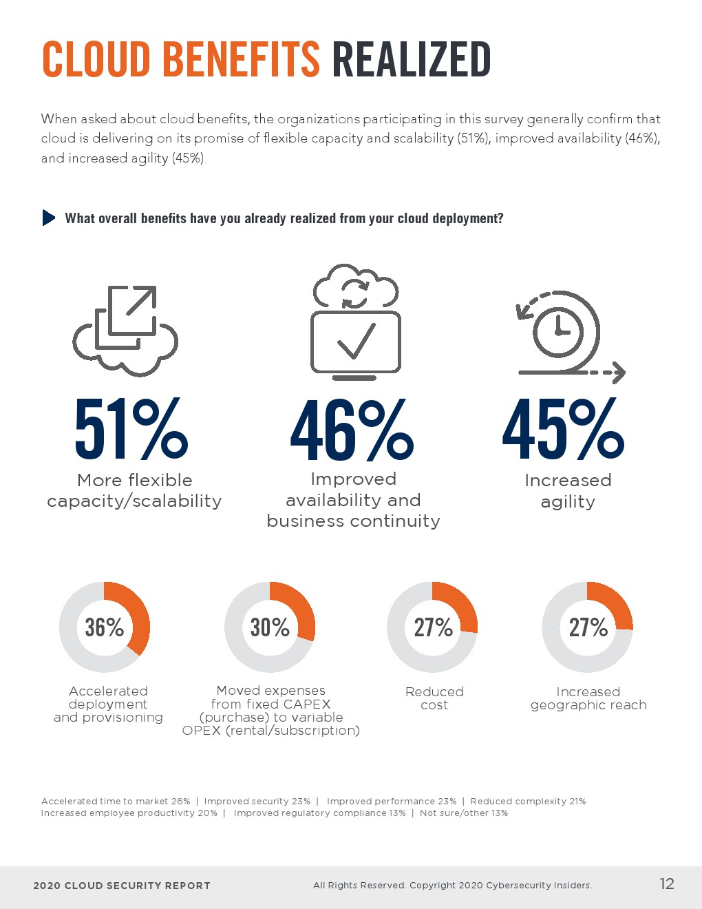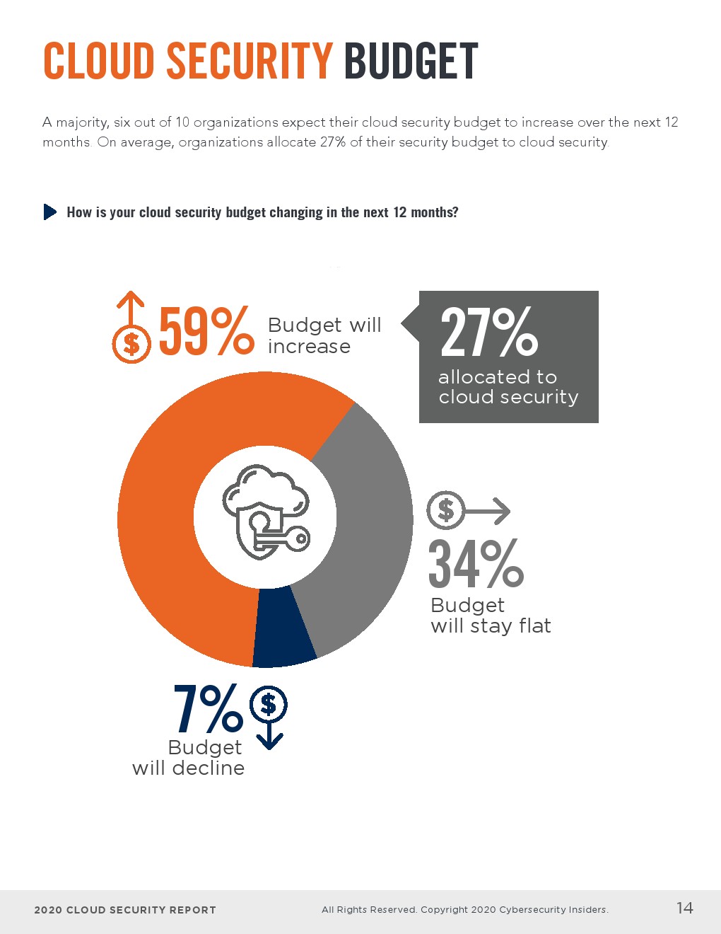 - 6/10的企业预计其云安全预算将在未来12个月内增加。平均而言,企业将其安全预算的27%用于云安全。