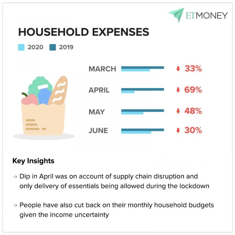 报告发现,由于供应链中断,4月份家庭支出大幅下降,因为在全国范围封锁期间,只允许交付必需品。考虑到收入的不确定性,人们每月的家庭预算也被削减了。