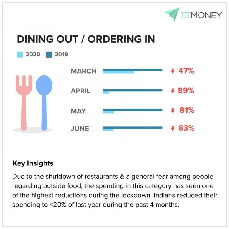 由于餐馆关闭和人们对外来食物的普遍恐惧,这类支出的降幅是最高的,与去年相比,人们的支出不到20%。