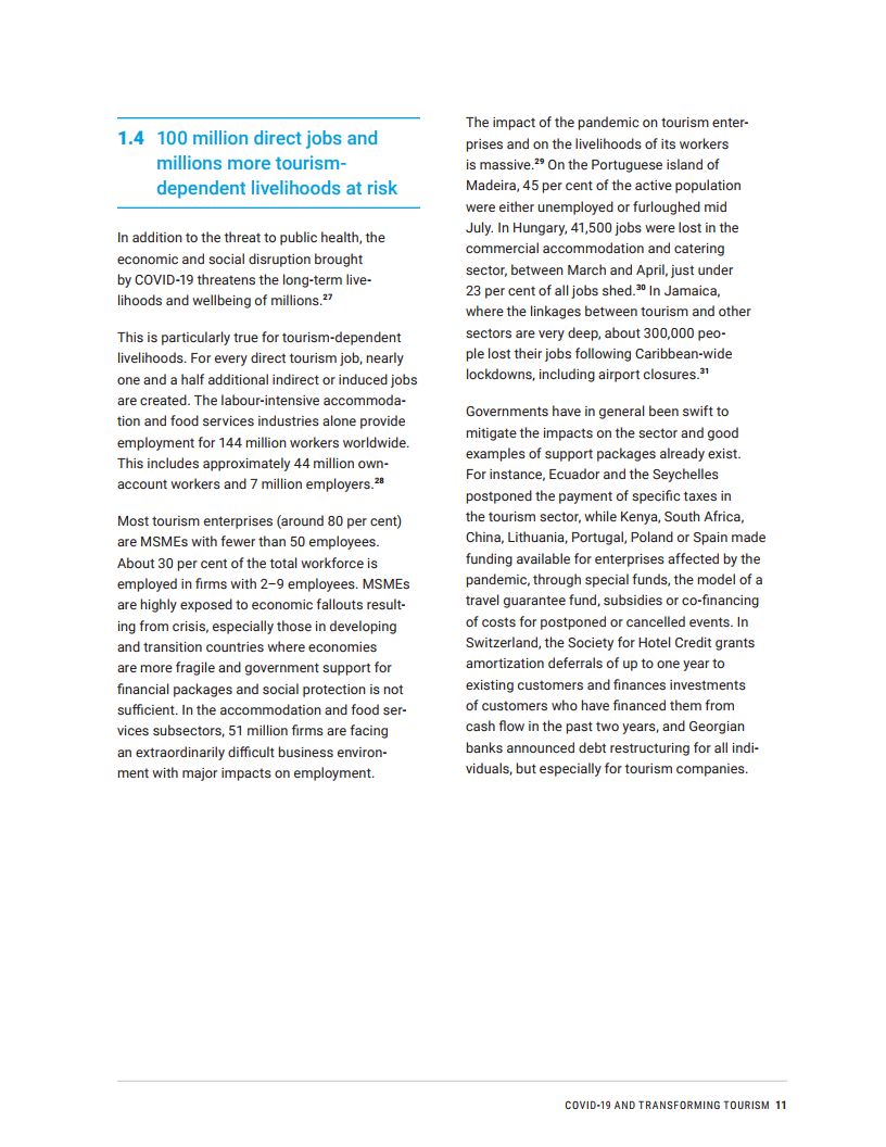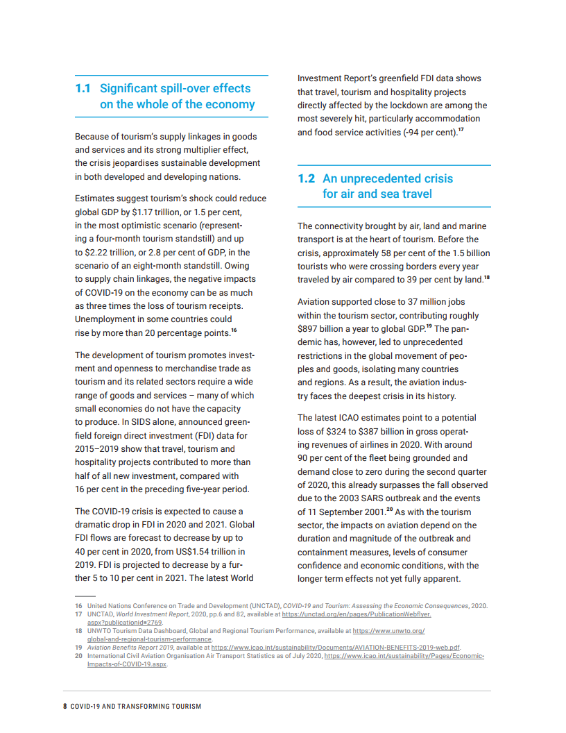 总体而言,旅游业大约1.2亿个直接就业岗位危在旦夕。