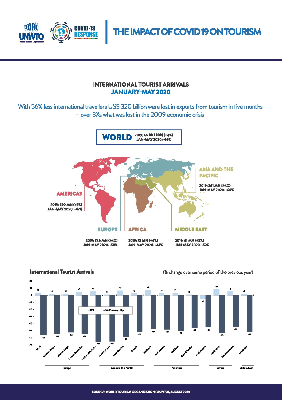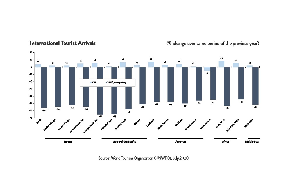 根据最新发布的2020年前五个月的数据,与2019年同期相比,全球国际游客人数下降了56%。考虑到大多数旅行限制在3月中旬才生效,可以预期,如果将6月和7月的数字包括在内,如果不是更糟的话,数字看起来至少会同样糟糕。随着美国和整个欧洲最近新增感染人数的上升,重振境况不佳的旅游业的努力遭遇了重大挫折,数百万人担心自己的生计,特别是在严重依赖国际游客的地区。