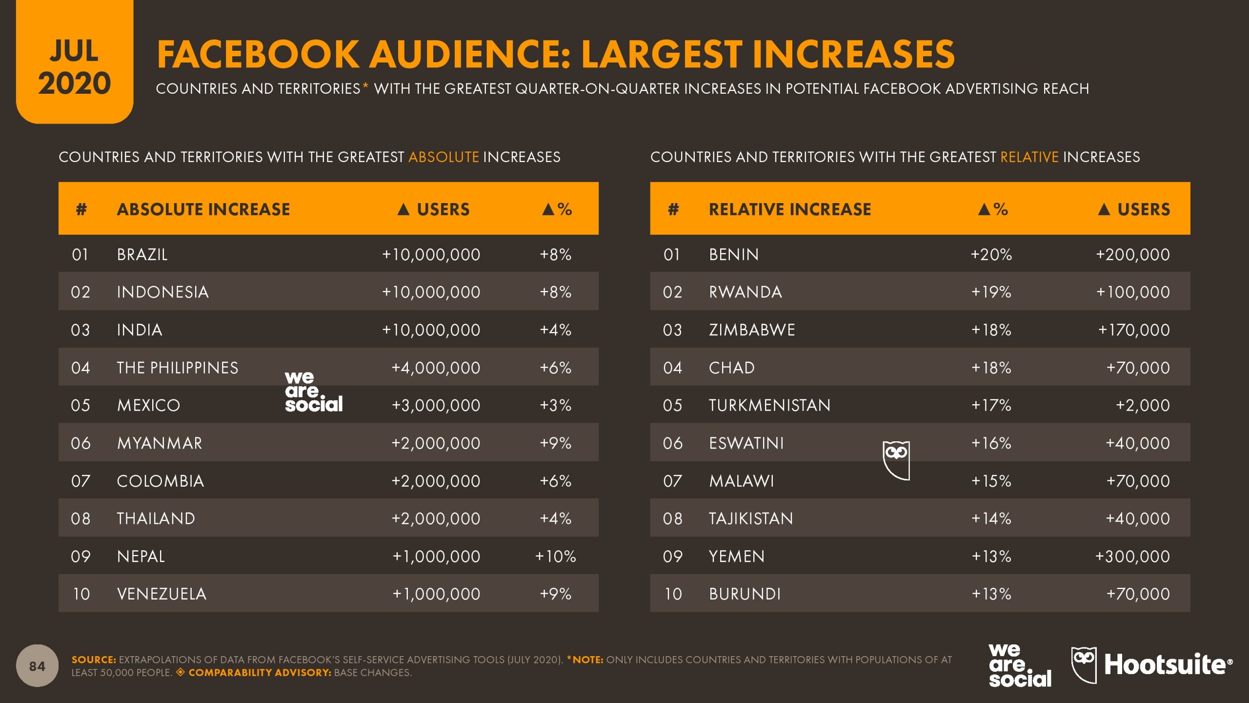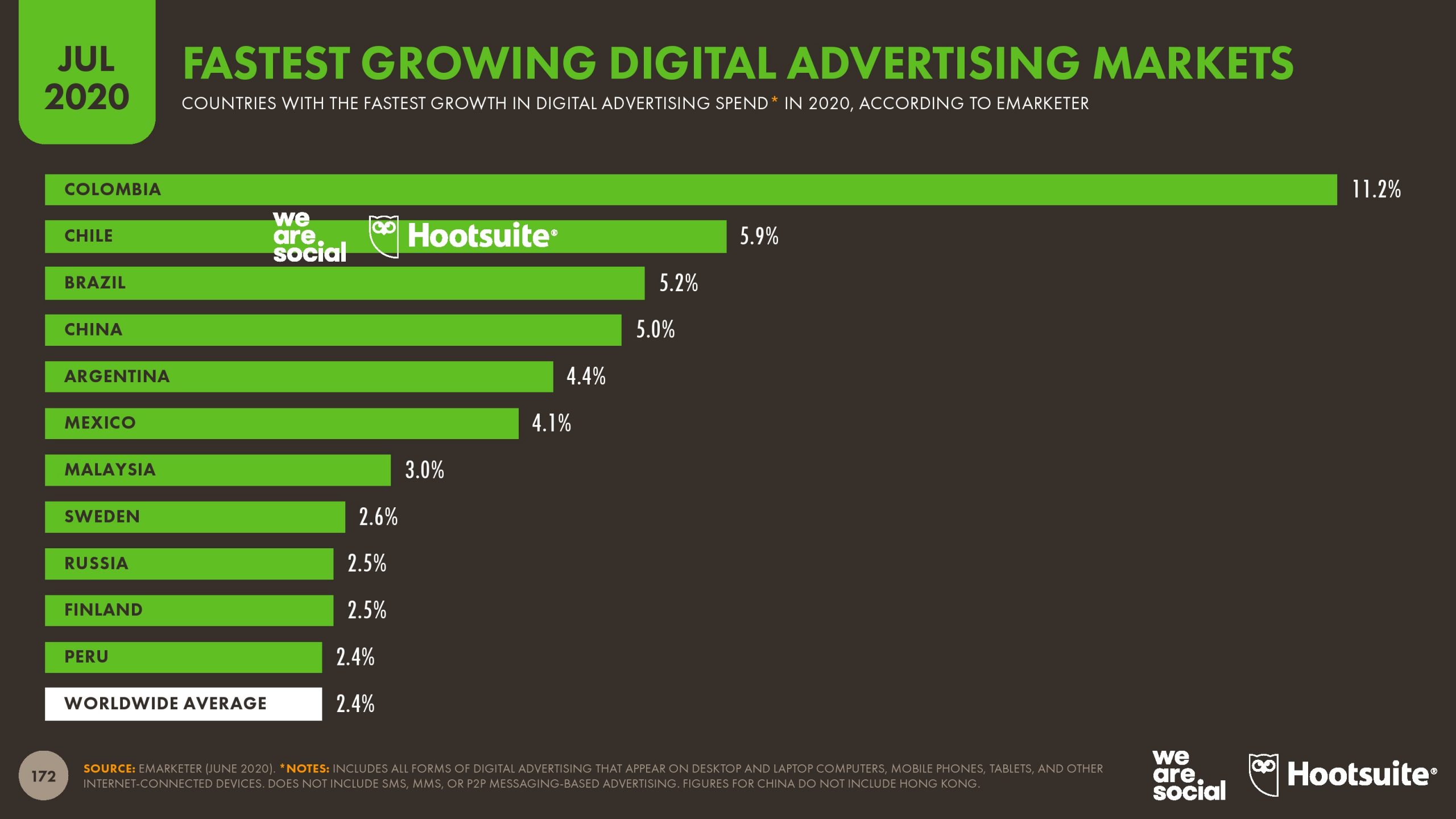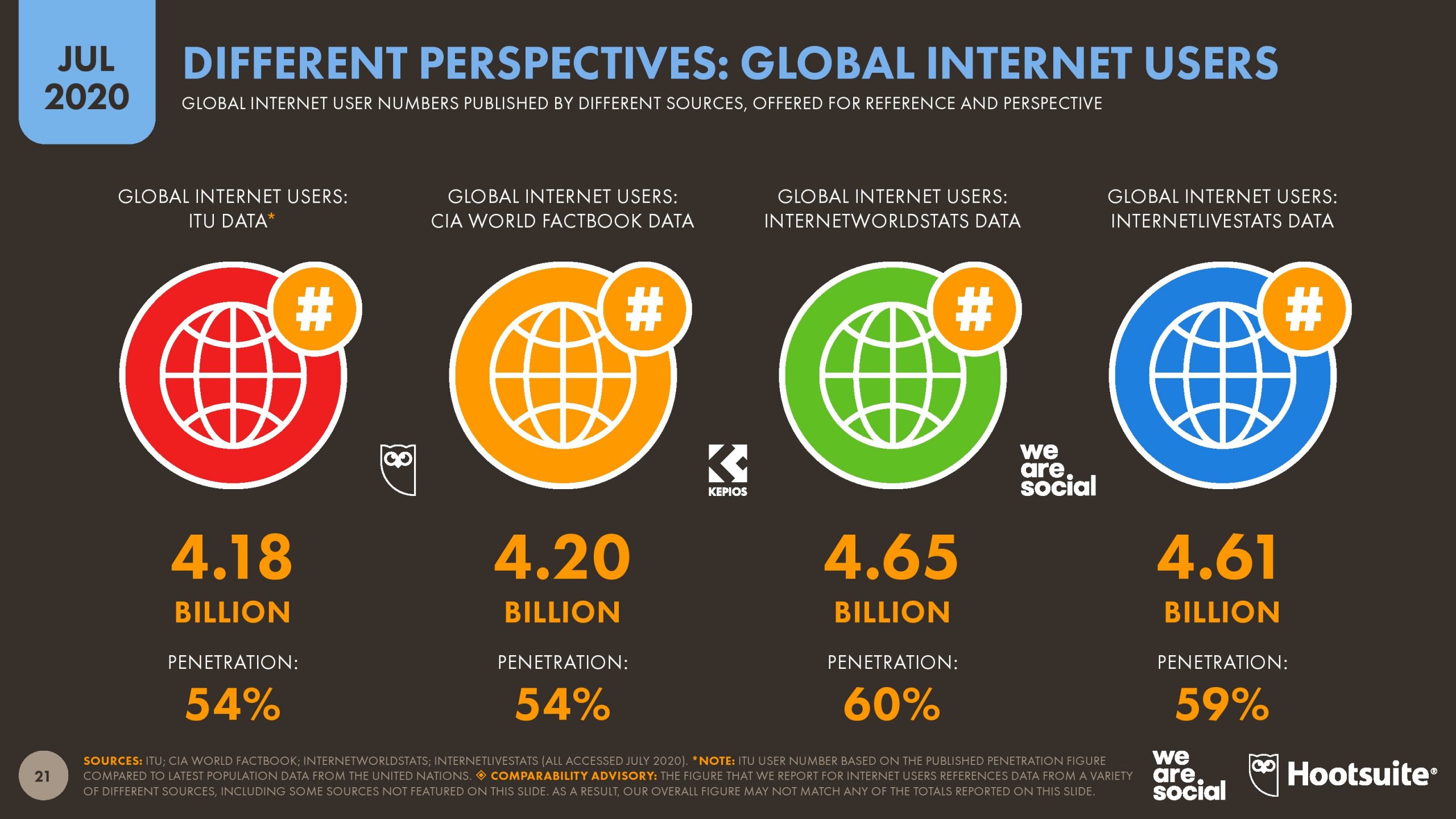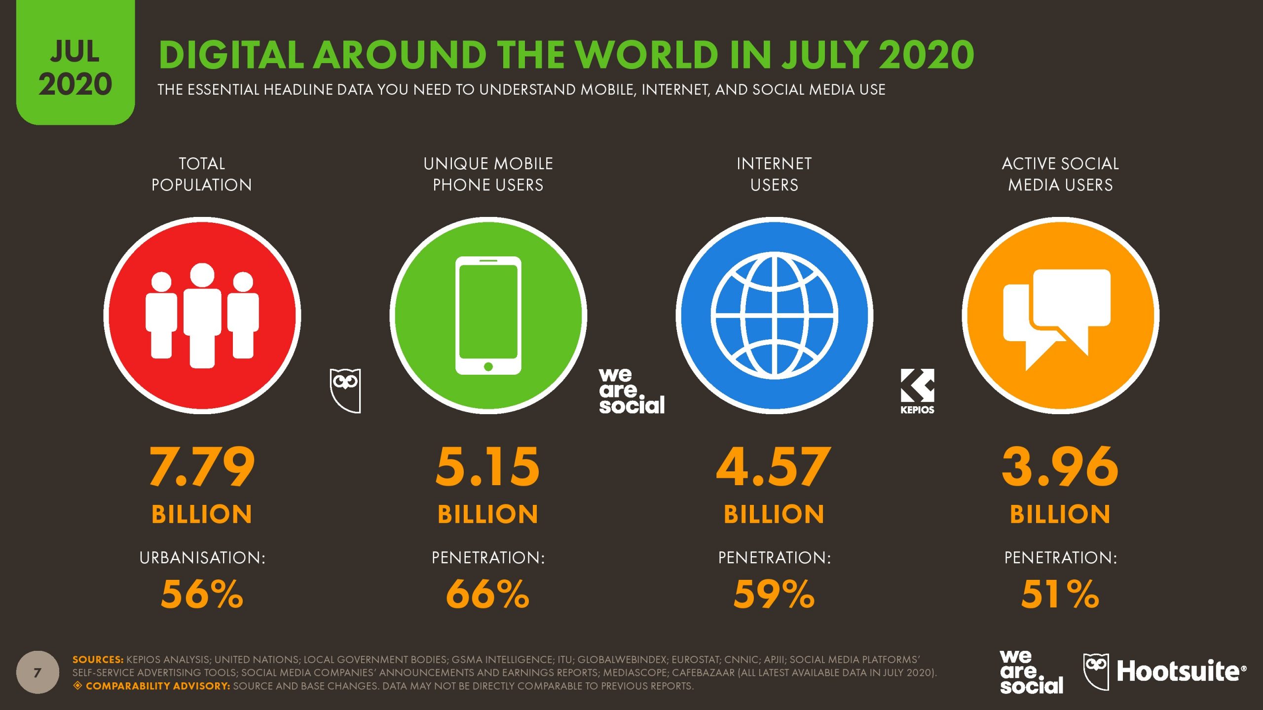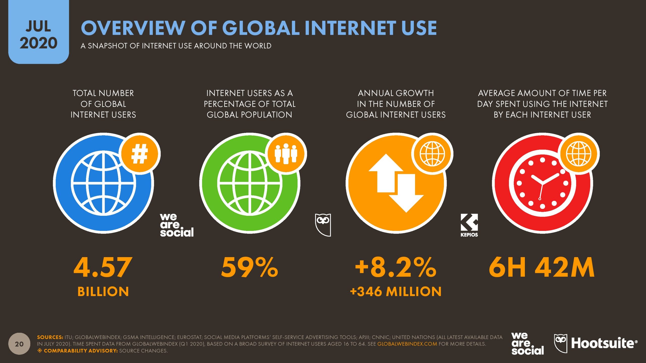 在过去的12个月,全球网民数量增长了3.46亿人,相当于同比增长超过8%。这意味着,自2019年7月以来,平均每秒大约有11个新用户上线。