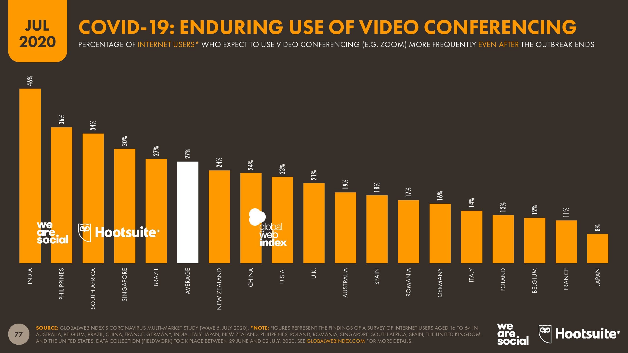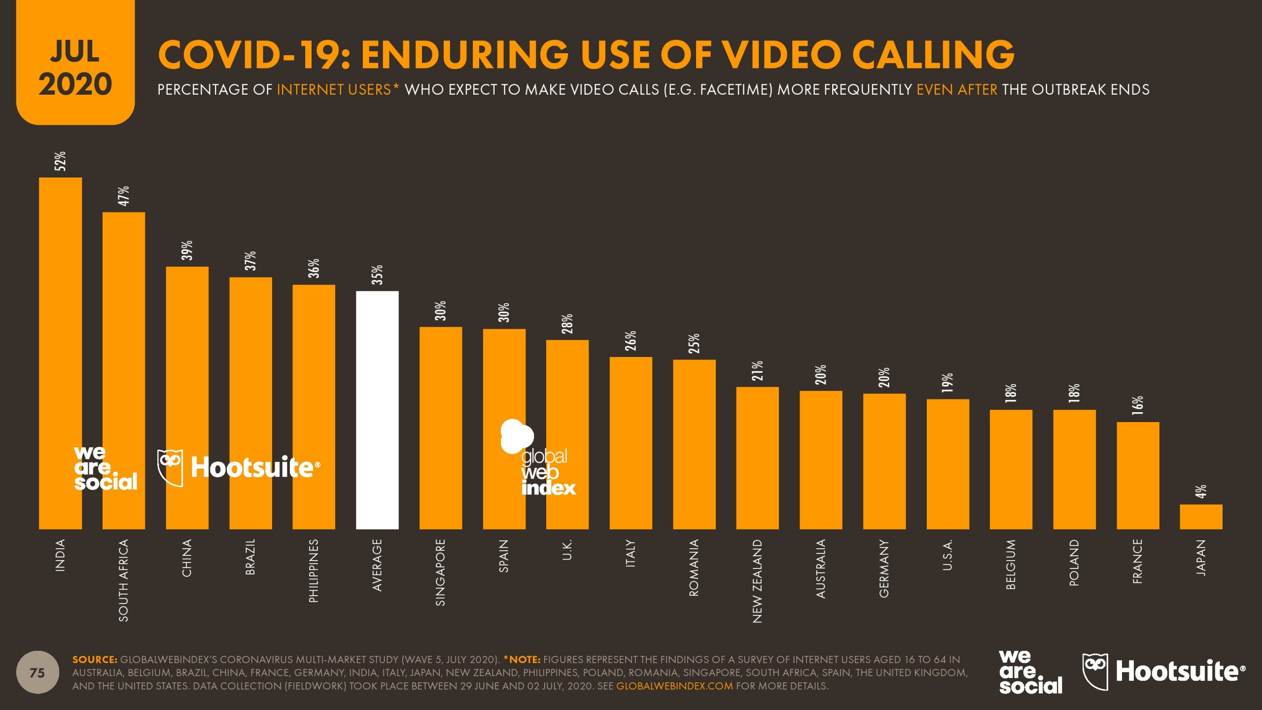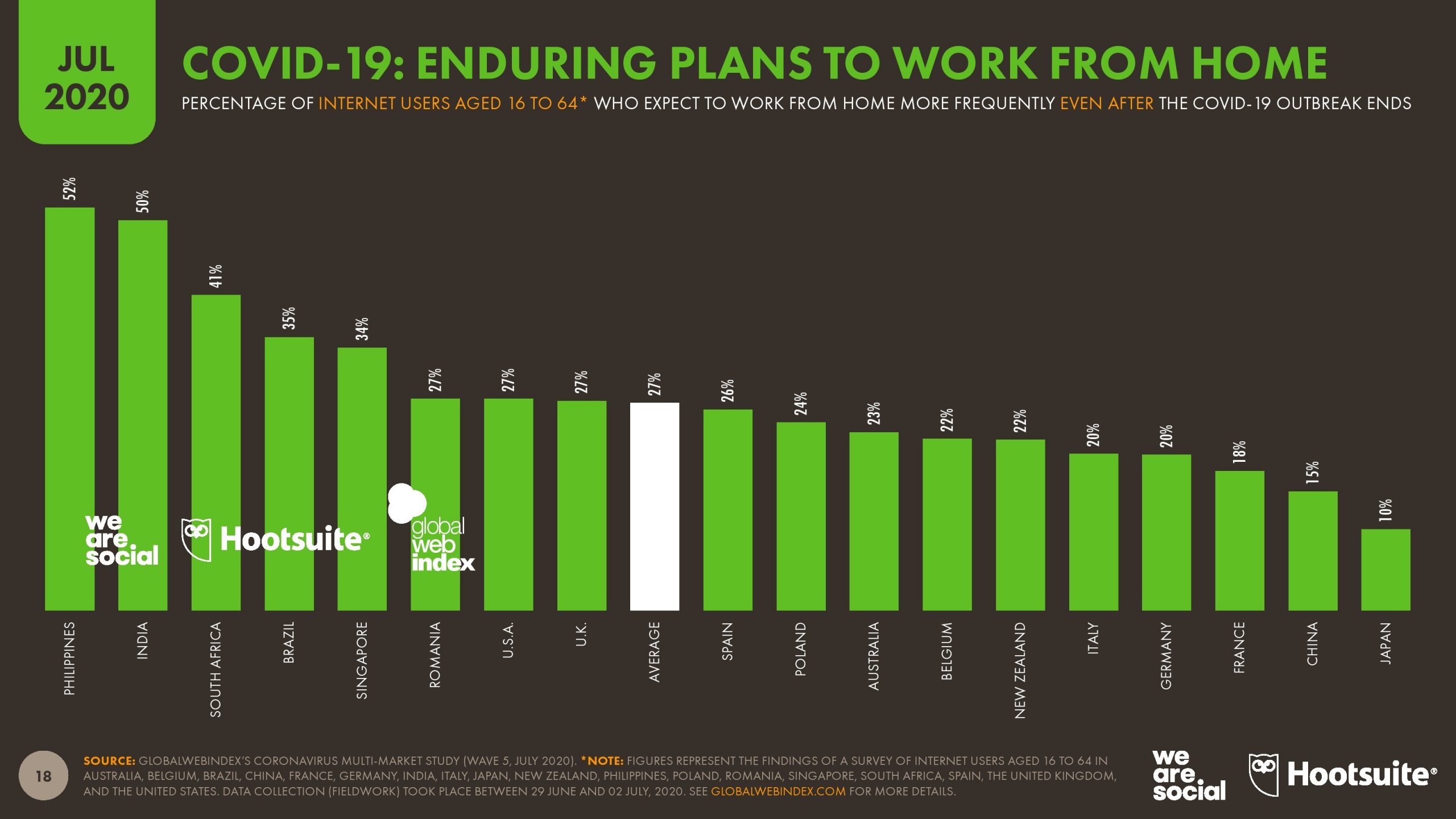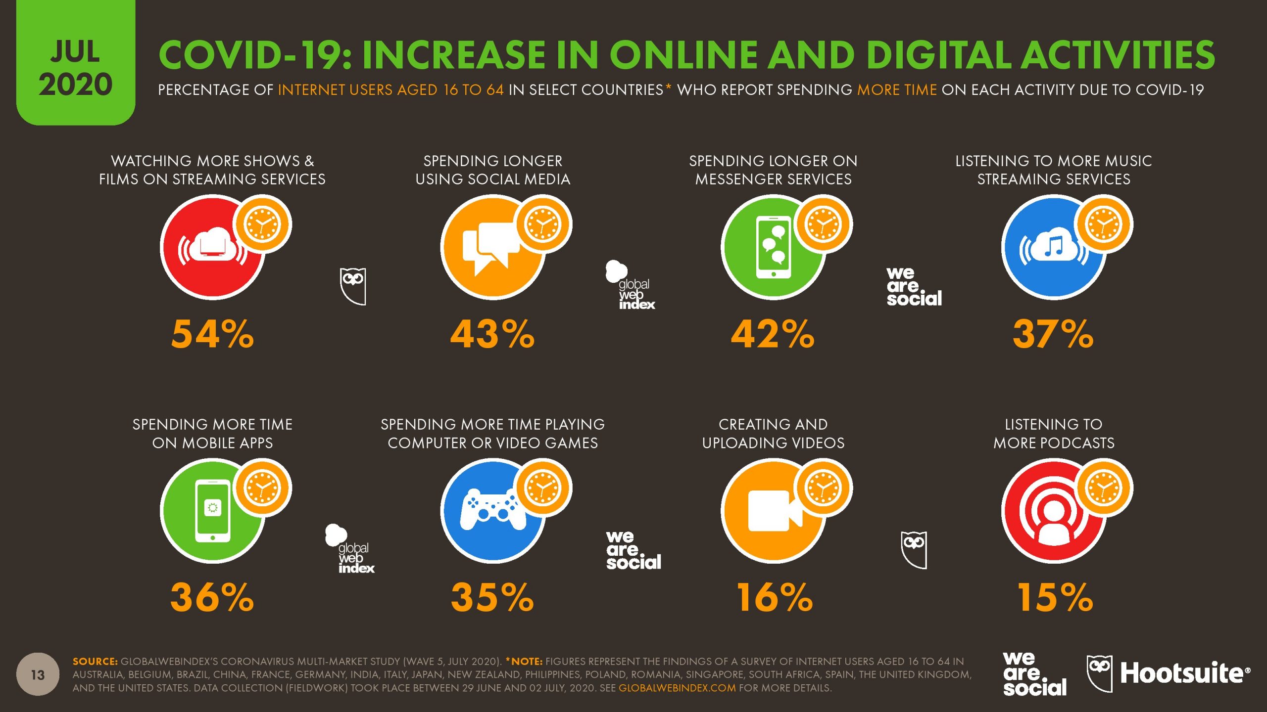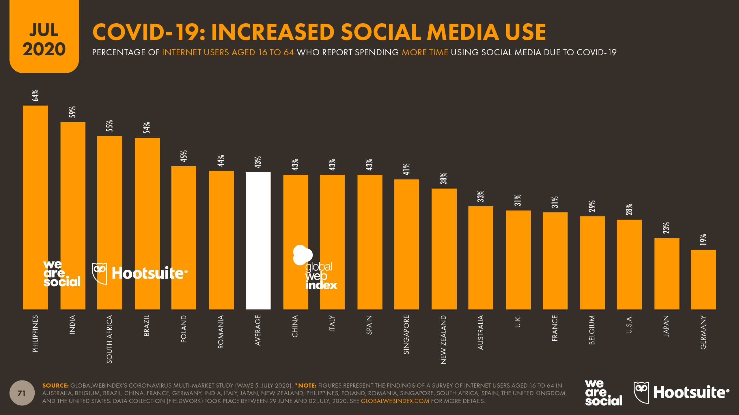 新冠肺炎导致停工可能对社交媒体普及率增长起到了一定作用。