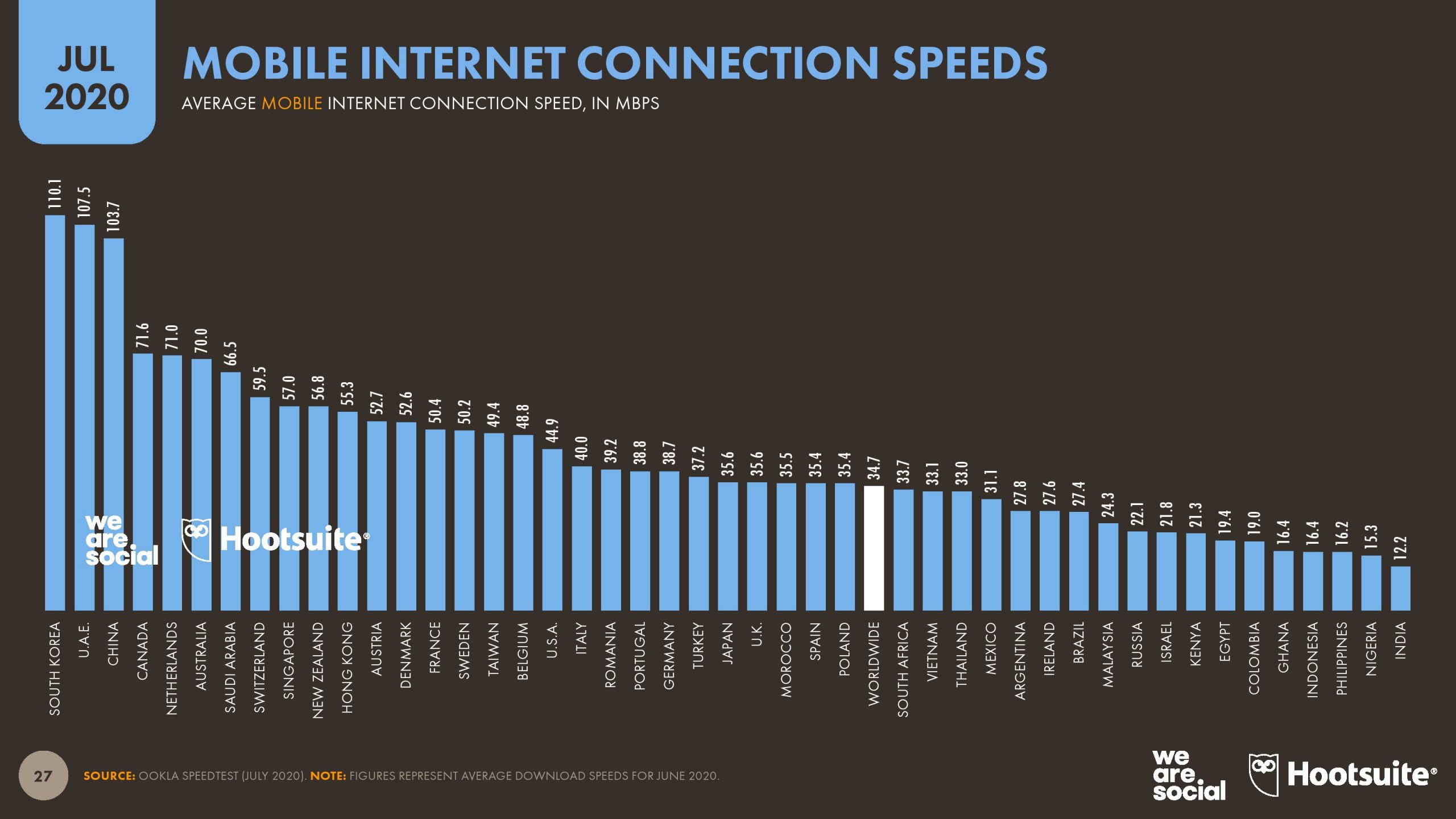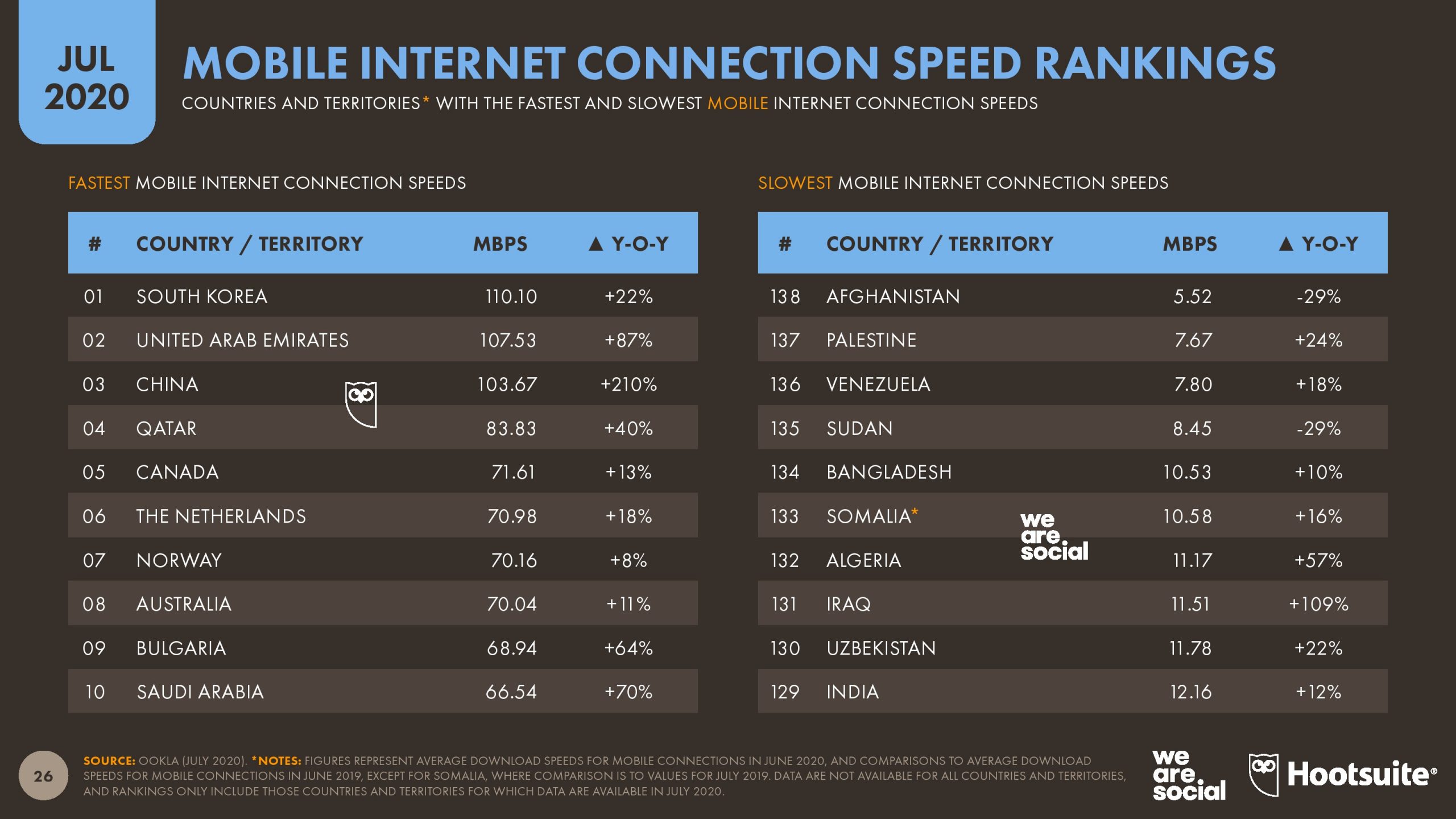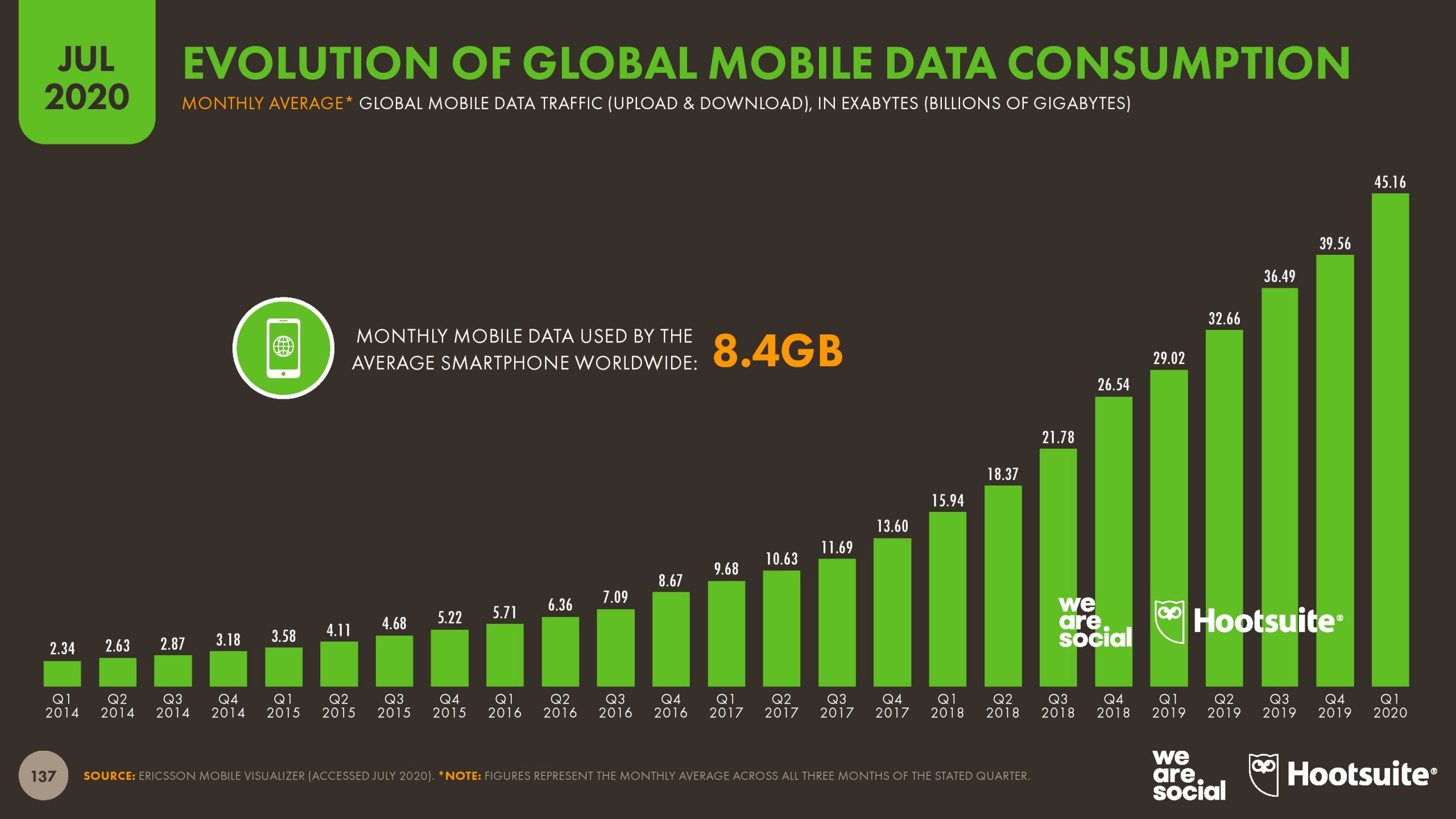 移动用户在过去一年中增长了2.4%,增长速度在2020年前三个月放缓,季度环比增长0.5%。这种放缓可能是由于新冠肺炎的影响,特别是在中国。中国在全球整体增长中贡献了相当大的份额。