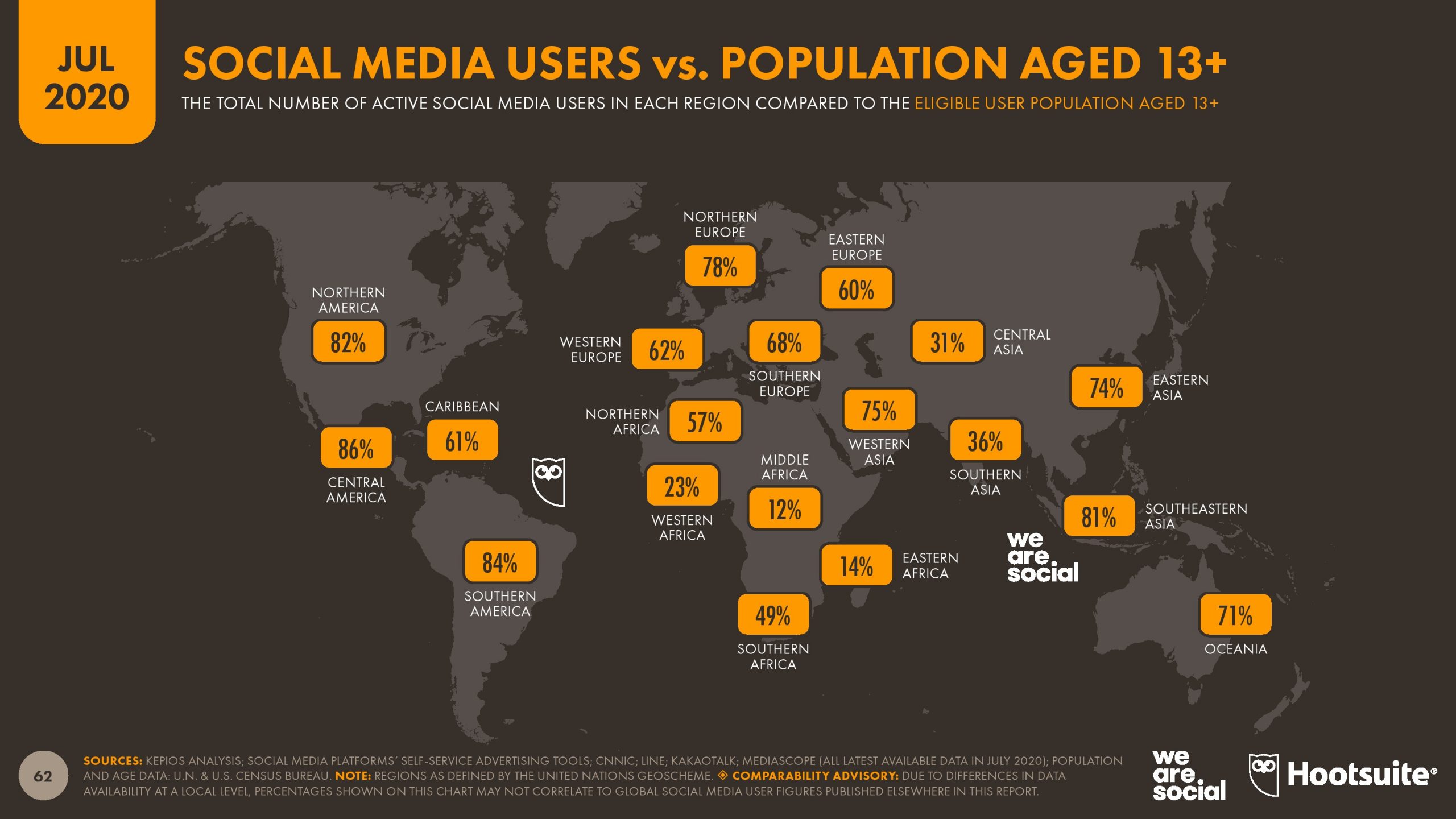 这意味着世界上超过一半的人口现在使用社交媒体,使用社交媒体的人比不使用社交媒体的人更多。