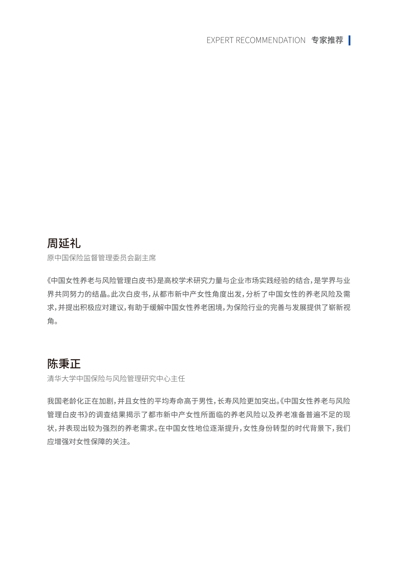 中宏保险首席执行官张凯表示:“中宏保险与复旦发展研究院的战略合作已迈入第二年,我们对女性养老和健康持续关注,今年的白皮书重点聚焦女性的养老风险。调查发现女性的养老准备仍有较大差距,我们期望借此研究唤醒广大女性对风险管理和保障配置的关注。为应对养老所要面临的多重挑战,我们建议女性尽早筹划、谨慎评估风险保障缺口, 动态调整养老规划,理性选择养老金融工具作为补充,为自身的保障加持,有效弥补退休后的生活保障缺口,进而实现无忧养老生活。”