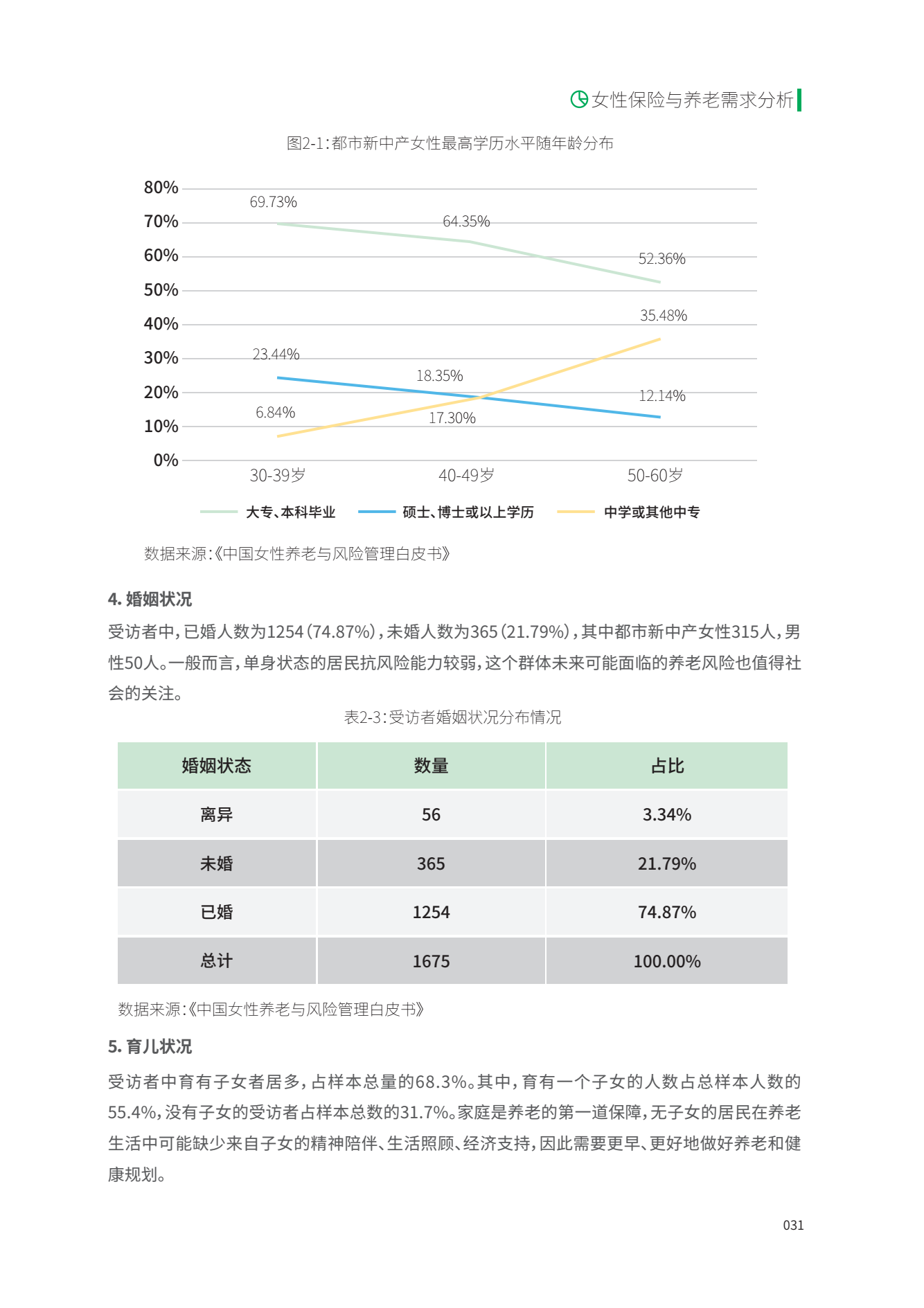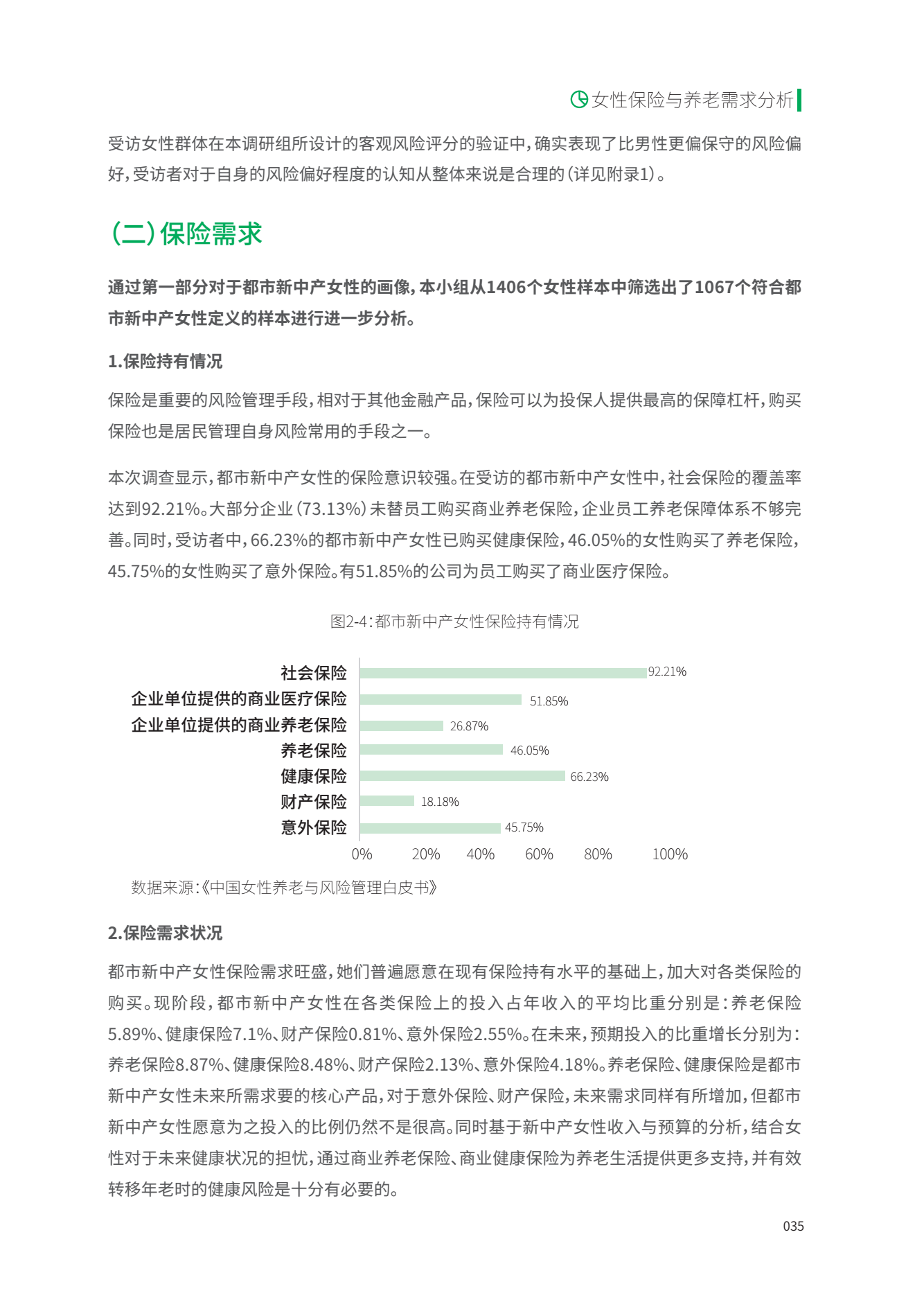近日,聚焦于中国女性养老保障、准备和风险管理的国内首份《中国女性养老与风险管理白皮书》发布。白皮书研究表明,女性对养老风险的意识不足,且老年面临的健康风险较高,受访女性中购买养老保险的比例未过半数(47.44%)。