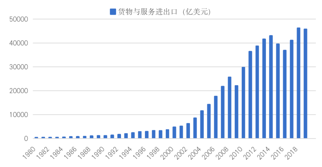 图6 1980至2019年我国货物与服务贸易进出口情况
