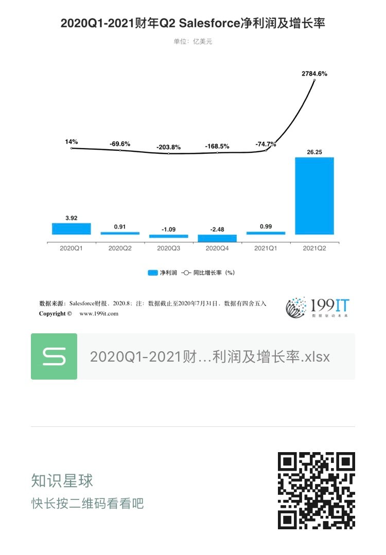 - 2020Q1-2021财年Q2 Salesforce净利润及净利率(附原数据表)