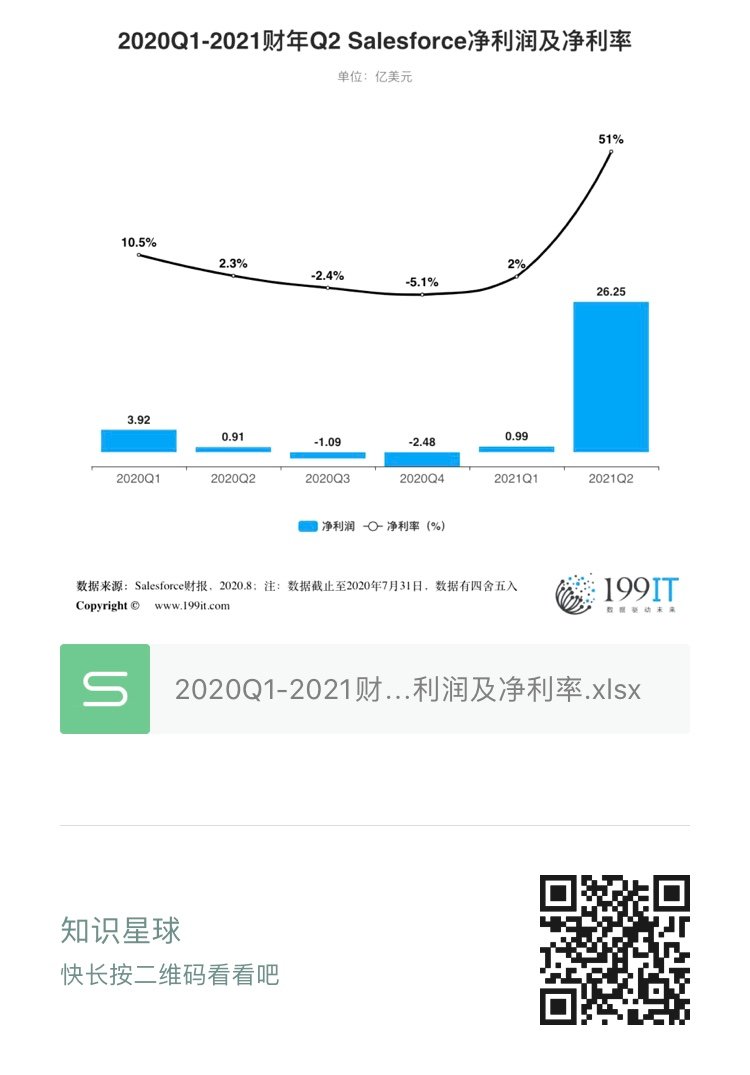 - 2020Q1-2021财年Q2 Salesforce净利润及增长率(附原数据表)