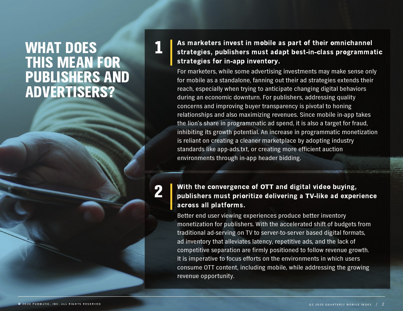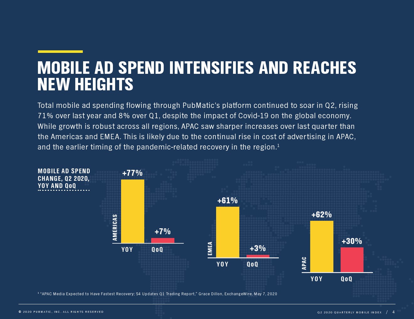 PubMatic的市场研究总监Susan Wu表示:“我们看到消费者明显倾向于更多地使用移动应用,并在更广泛的应用和内容形式上进行更多的移动参与。鉴于形势的迅速变化,广告主和出版商迅速采取行动抓住这一势头,同时部署着眼于未来的灵活性的战略。”