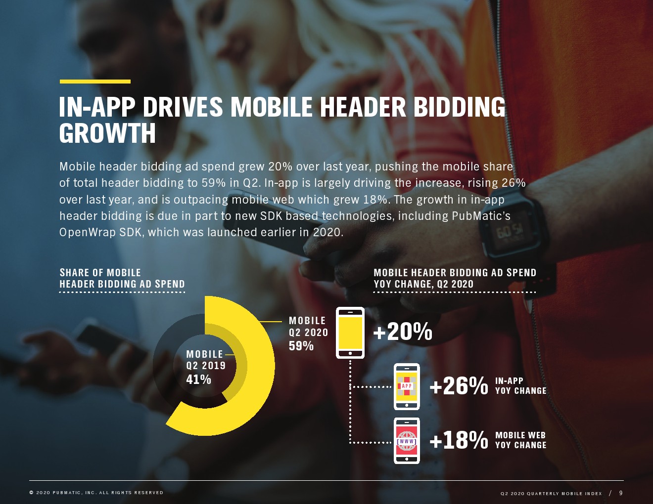 移动竞价比去年增长了20%,推动第二季度移动在竞价中的份额达到59%。应用内广告推动了最大的增长,比去年增长了26%,超过了移动网络的增长率(18%)