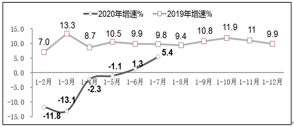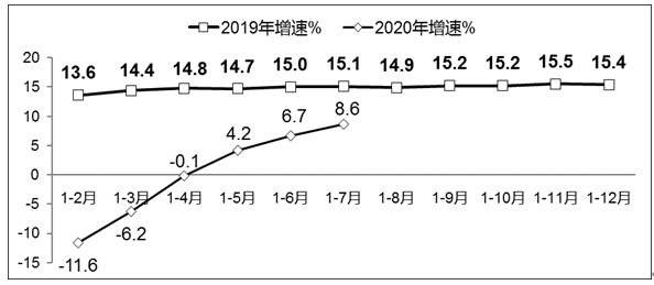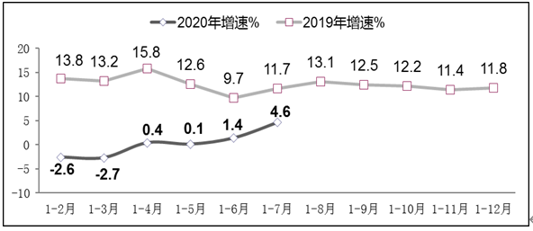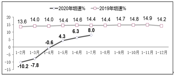 图1 2019年-2020年1-7月软件业务收入增长情况