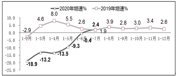 图2 2019年-2020年1-7月软件业利润总额增长情况