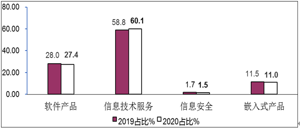 图5 2019年/2020年1-7月软件业分类收入占比情况