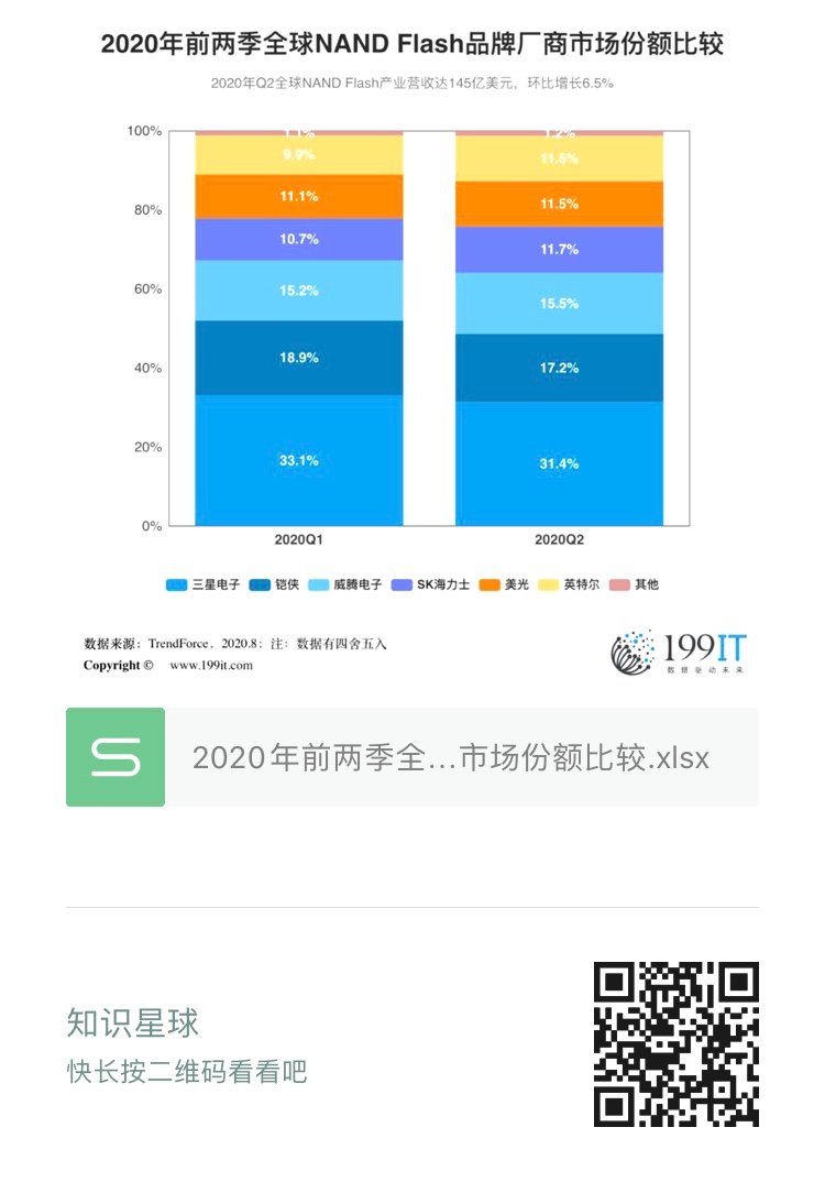 - 2020年第二季度全球NAND Flash品牌厂商营收排名(附原数据表)
