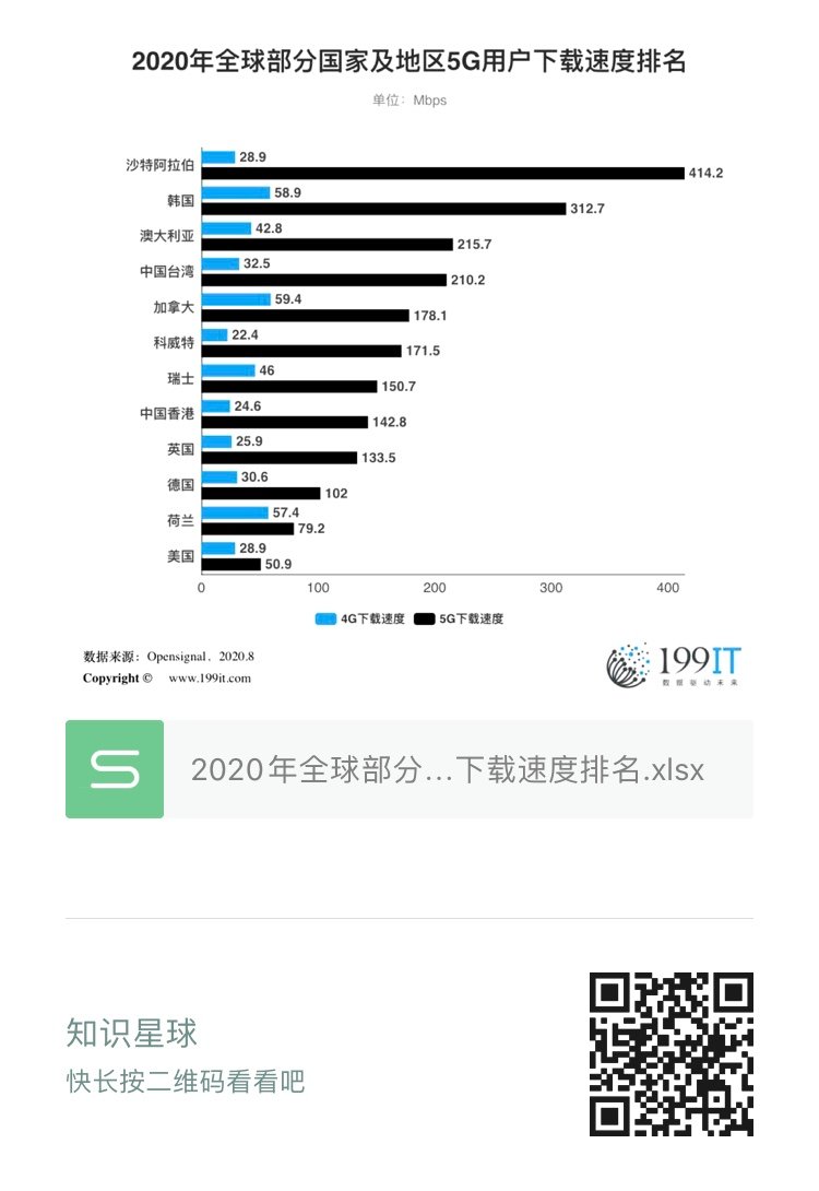 2020年全球部分国家及地区5G用户下载速度排名(附原数据表) ​​​​