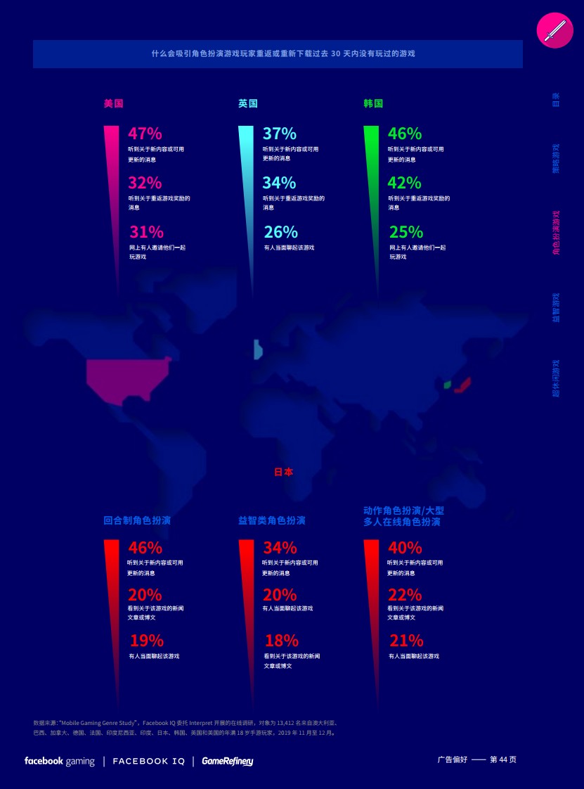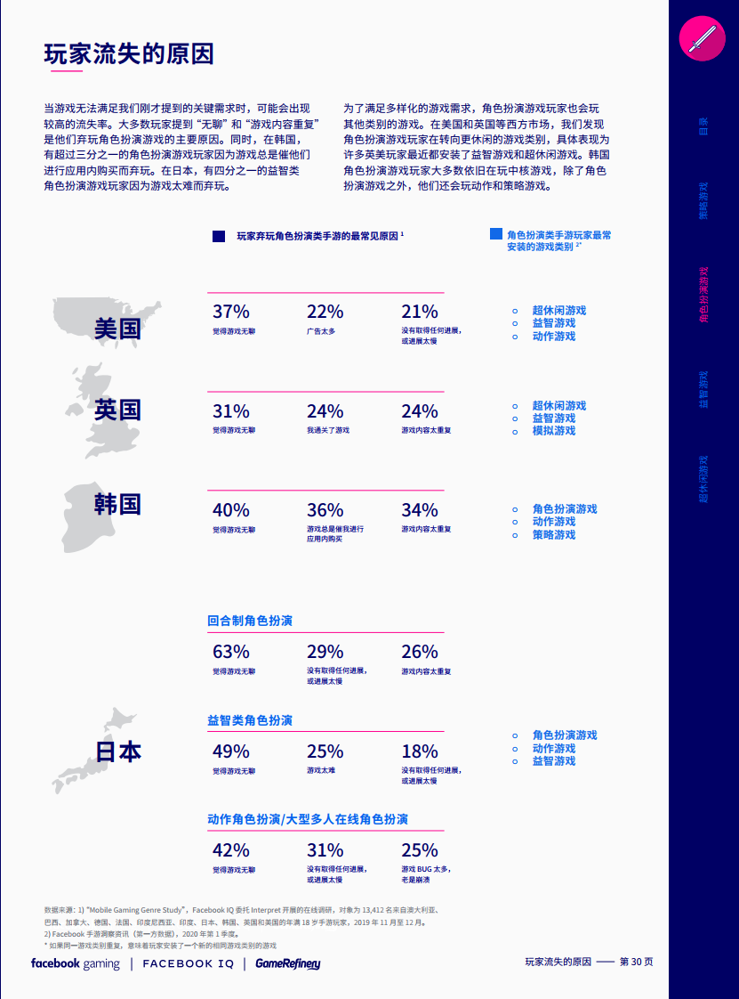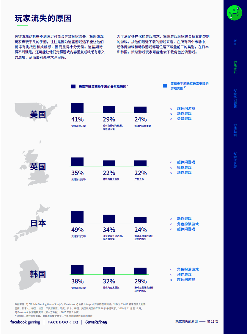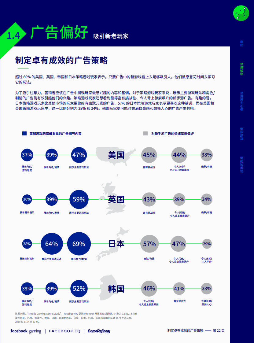 《成就伟大:游戏类别洞察报告》探讨了美国、英国、日本和韩国的角色扮演游戏、策略游戏、益智游戏和超休闲游戏玩家的偏好,这些类别游戏的功能如何实现玩家所说的预期,以及他们对社群和广告的看法。