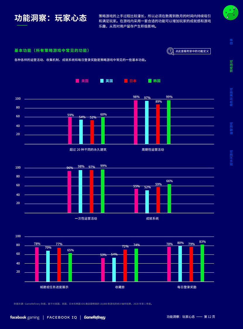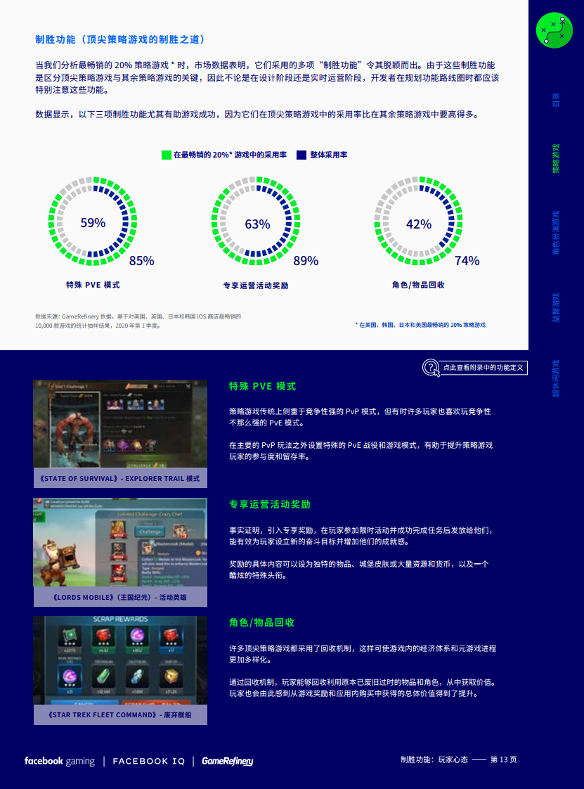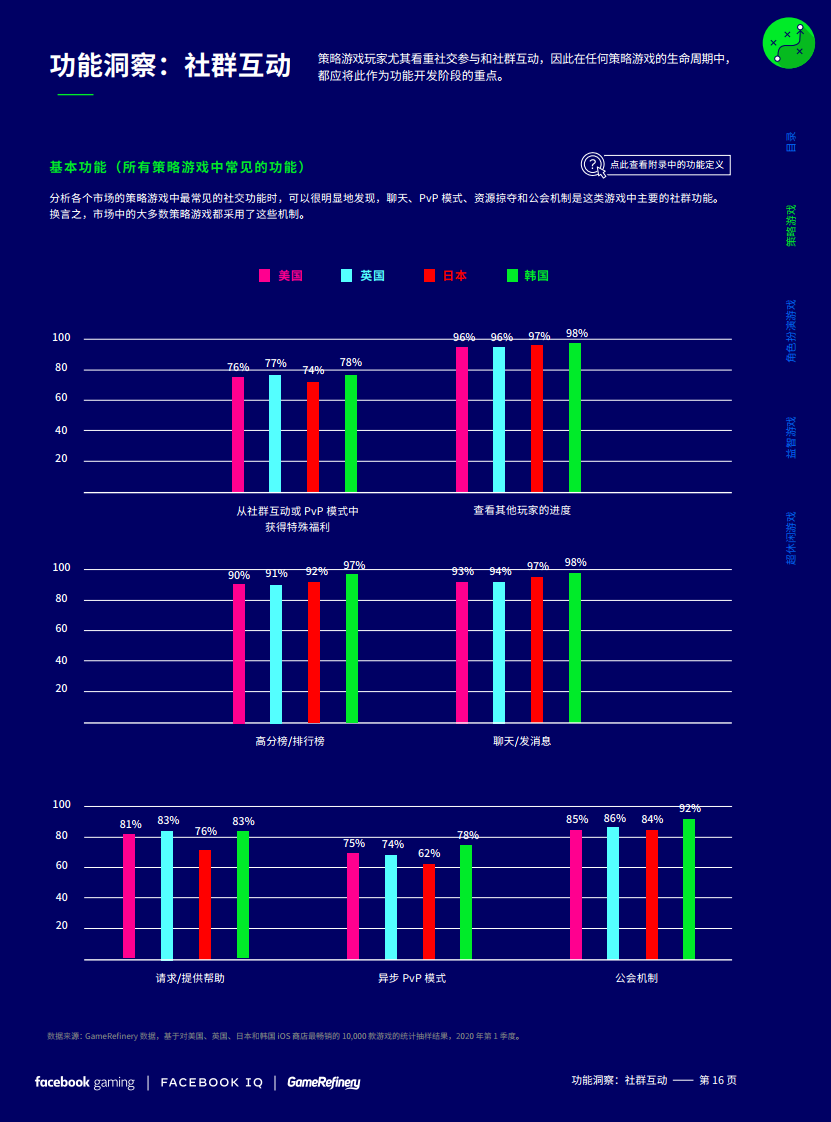 报告运用 GameRefinery 的分析,确定了哪些功能可以很好地增强游戏在这四大维度上的表现,并研究了还有哪些方面存在改进空间,从而为玩家提供更满意的游戏体验。