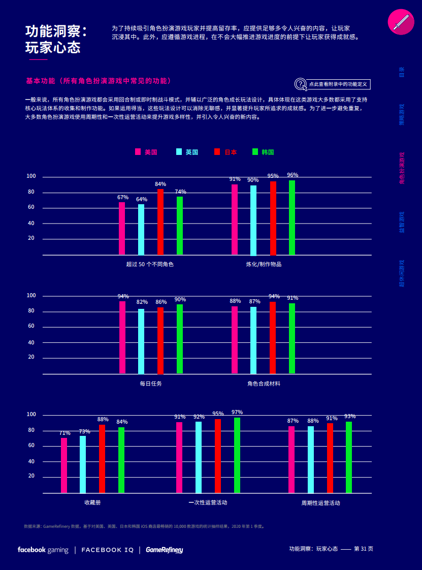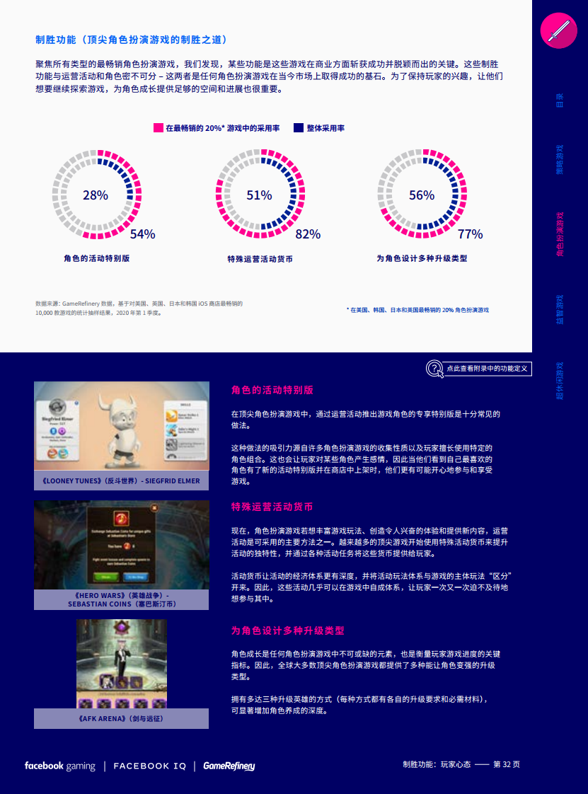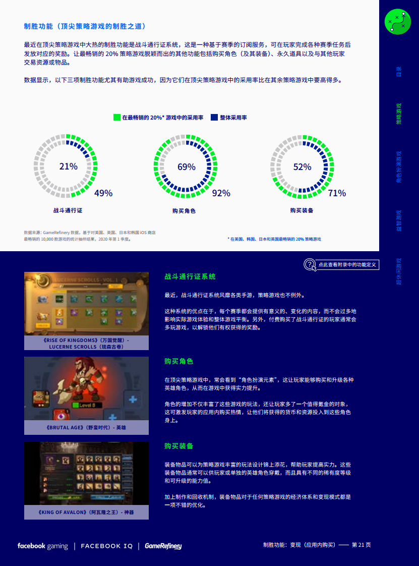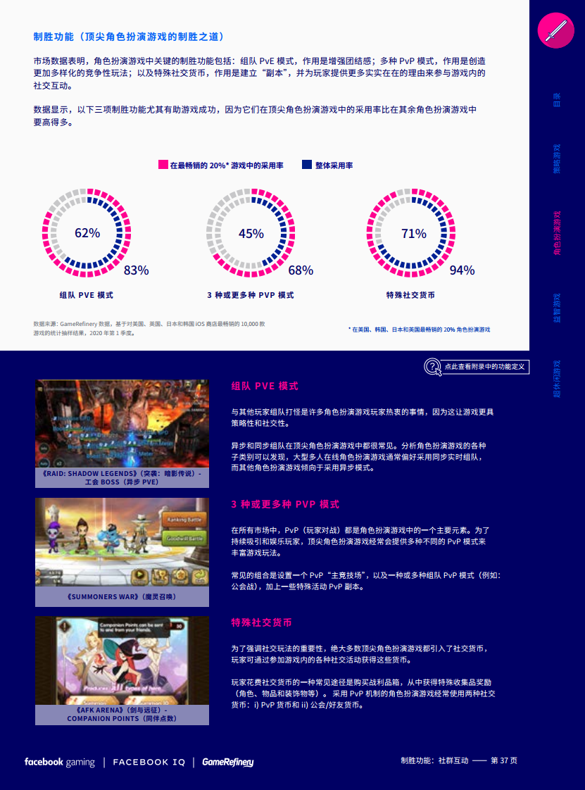 报告运用 GameRefinery 的分析,确定了哪些功能可以很好地增强游戏在这四大维度上的表现,并研究了还有哪些方面存在改进空间,从而为玩家提供更满意的游戏体验。
