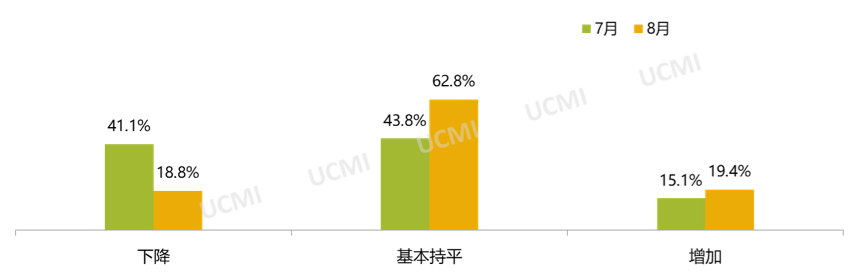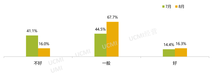 调查显示,经销商认为8月份的经营状况好,认为经营状况“一般”的比例为52.4%,认为“好”的经销商比例为28.1%。