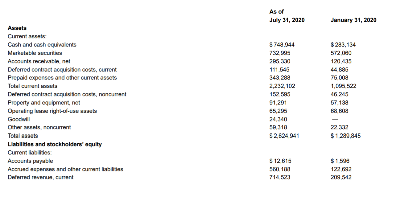- 现金:截至2020年7月31日,现金、现金等价物和有价证券总额为15亿美元。