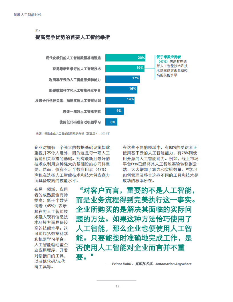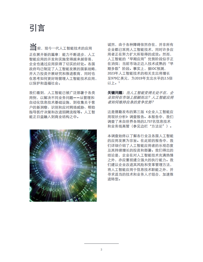 德勤连续第三年针对企业高管开展人工智能相关调查,了解其企业对于人工智能技术的看法和实践。今年调查的特别关注重点在于,在人工智能应用持续增长的背景下,企业将如何采取行动才能保持领先。