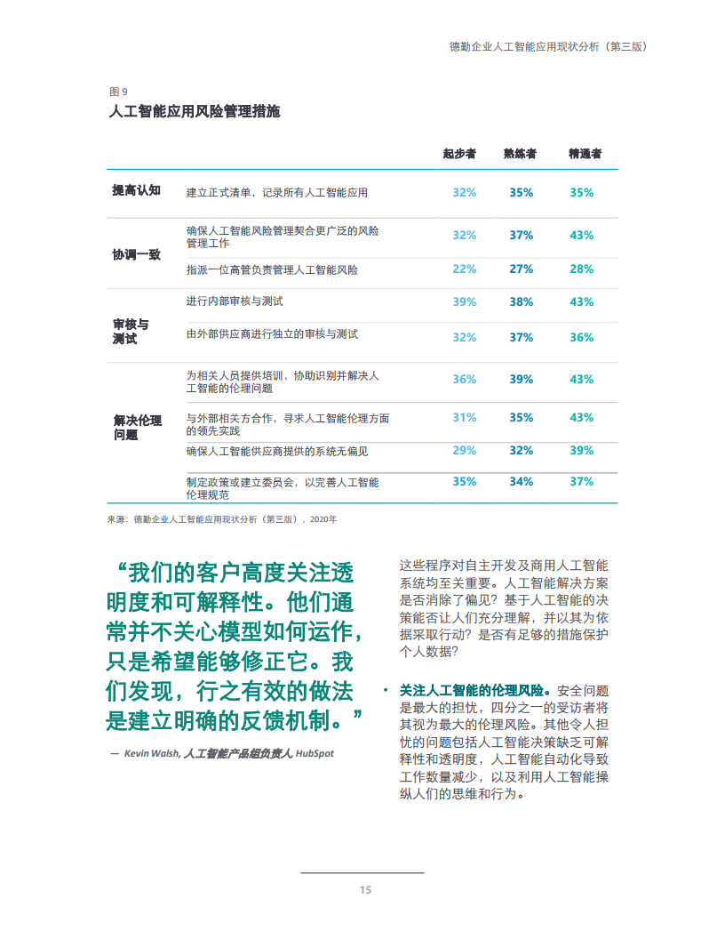 同时,随着人工智能治理、信任和伦理道德日益成为董事会的重要议题,我们希望了解人工智能应用者如何有效地管理相关技术风险。