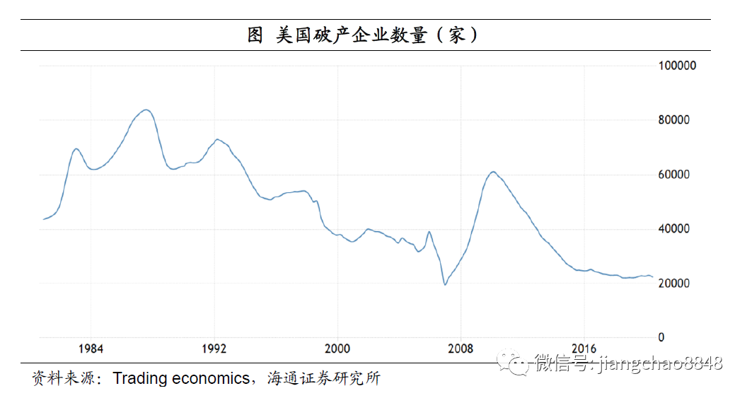 而从实体经济中破产企业的数量来看,今年2季度美国有2.25万家企业申请破产,与去年同期的数量基本持平,比1季度的2.31万家甚至还有下降。这意味着在实体经济层面也并未出现大面积的企业破产倒闭。而在08年金融危机期间,单季破产企业的数量从2万家升至最高超过了6万家。