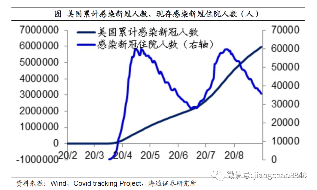 虽然美国感染的人数还在继续上升,但由于医疗水平的进步,大部分感染者都可以康复,目前还在住院的感染者大幅减少,说明新冠占用的医疗资源也在持续下降。因此,目前虽然还没有有效的疫苗出现,但新冠的影响其实是在持续大幅减弱。
