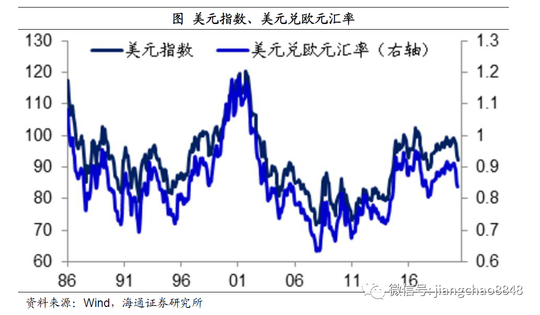 事实上,美元兑欧元汇率与美元指数的走势大致相当,这意味着分析美元指数的核心是分析美元兑欧元汇率走势。