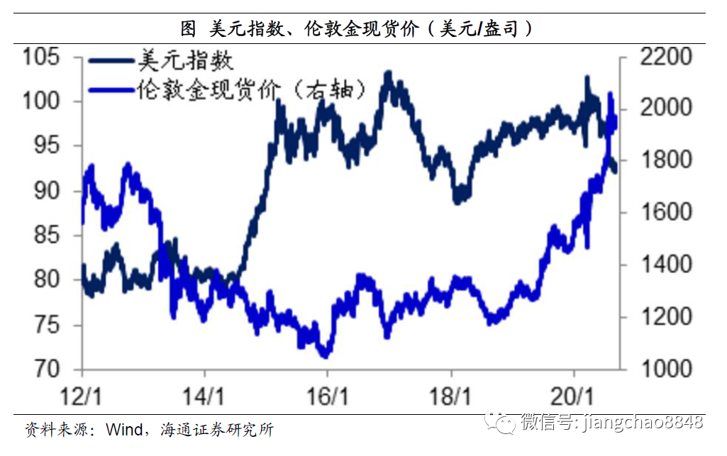 今年以来,美元出现了较为明显的贬值,尤其是在3月份以后,美元指数见顶以后的贬值幅度超过10%,美元的大幅贬值支撑黄金价格大幅上涨。