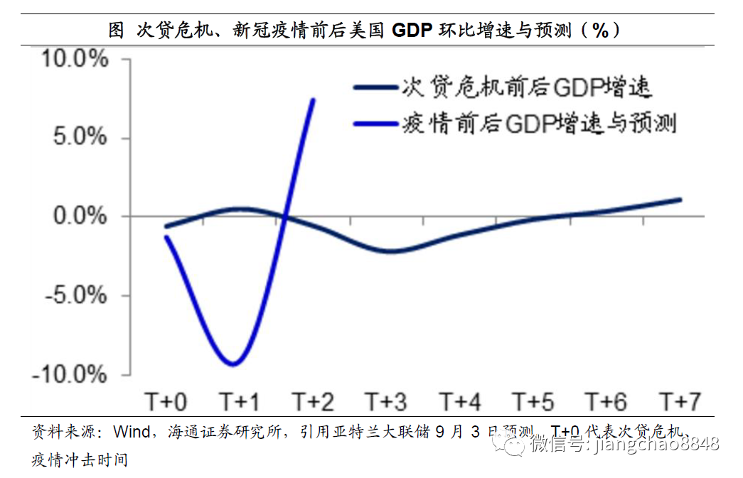 也就是说,相比08年金融危机期间经济的缓慢复苏,这一次美国经济在卫生事件之后更有可能出现V型反转。根据亚特兰大联储9月3日的最新预测,美国3季度GDP环比增速可能会高达7.4%,年化以后的环比增速或将接近30%。