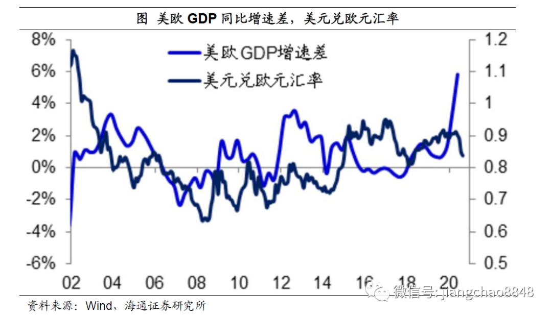 汇率决定的背后有着多种理论,例如经济决定论,亦即汇率反映了两国经济实力的对比。从数据看,过去美欧GDP增速差与美欧汇率的走势大体一致。但在今年卫生事件期间,美国经济的表现其实好于欧元区,美国2季度GDP增速同比下降9.1%,而欧元区2季度GDP增速同比下降15%,美欧经济增速差距的扩大很难解释同期美元兑欧元汇率的大幅走弱。