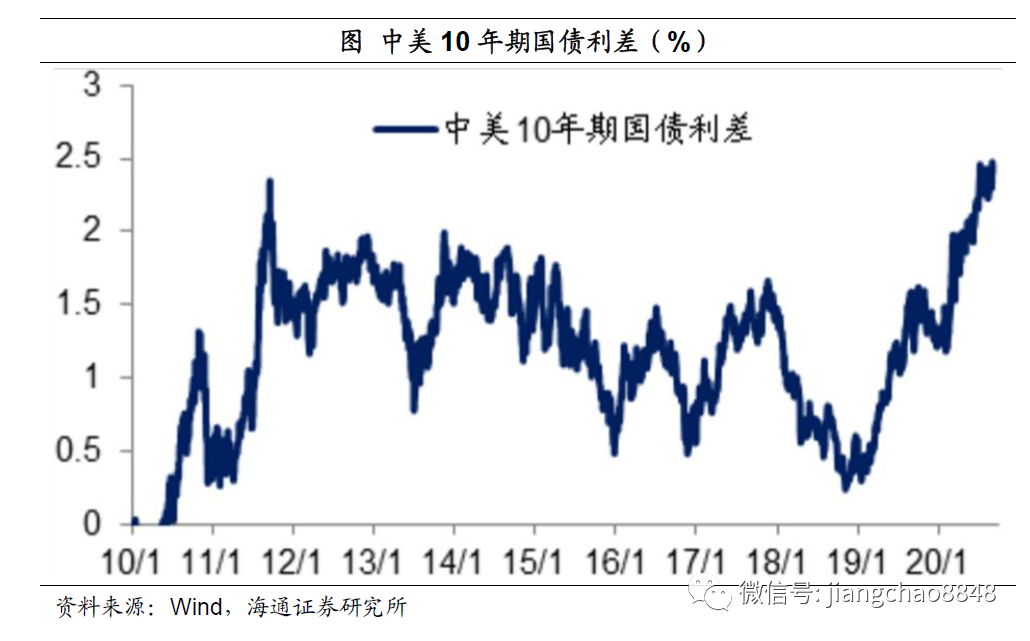 影响人民币对美元汇率的另一因素是中美利差。今年以来1年期中美利差从去年末的77bp扩大至246bp,这也是近期人民币对美元大幅升值的重要原因。