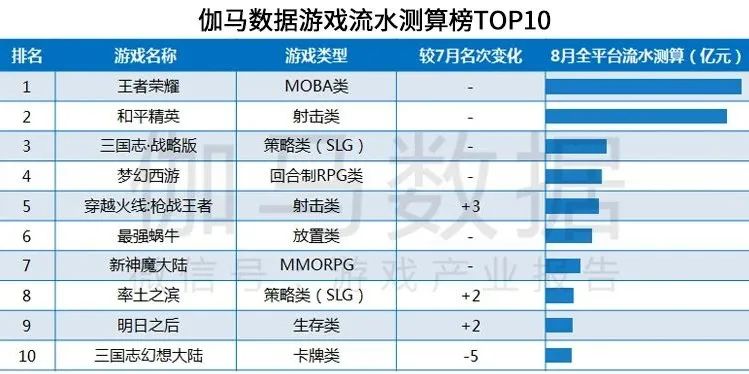 流水测算榜TOP10:前十少变化《穿越火线:枪战王者》令人眼前一亮