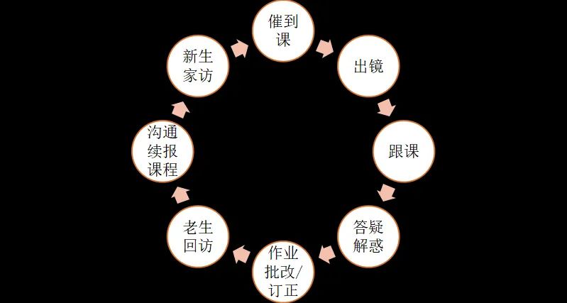 《报告》指出,目前头部在线教育机构的“辅导老师”工作流程标准化程度较高,包括新生家访、催到课、出镜、跟课、答疑解惑、作业批改/订正、老生回访、沟通续报课程八大环节,形成了课前–课中–课后工作流程的闭环,以帮助学生培养良好的学习习惯,解决学生的疑难问题。此外,辅导老师还承担了制定学习规划、心理疏导等工作内容。