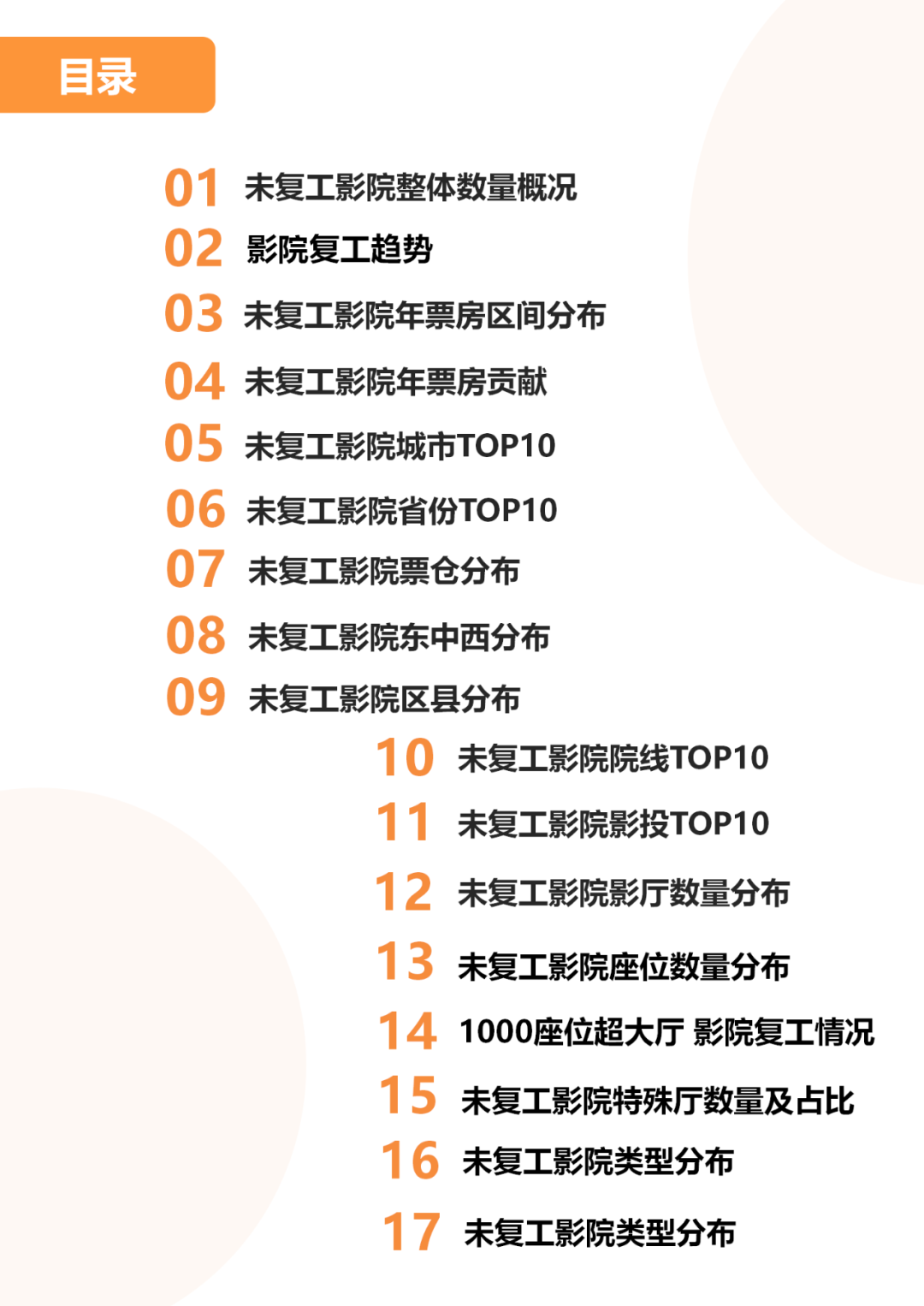 拓普数据:疫情常态化下未复工影院市场洞察报告 更多阅读:《庆余年》连续5天登顶热度榜,好口碑高曝光打造良心剧集电资办:2021年3月1-7日全国电影票房电资办:2021年11月22-28日全国电影票房周报电资办:2021年11月1-7日全国电影票房周报电资办:2021年10月全国电影票房月报电资办:2021年10月11-17日全国电影票房周报电资办:2021年10月4-10日全国电影票房周报电资办:2021年9月全国电影票房月报电资办:2021年7月26日-2021年8月1日全国电影票房周报猫眼研究院:2021暑期档动画电影数据洞察电资办:2021年7月12-18日全国电影票房周报电资办:2021年7月19-25日全国电影票房周报电资办:2021年7月26日-2021年8月1日全国电影票房周报电资办:2021年7月全国电影票房月报电资办:2021年9月13-19日全国电影票房周报
