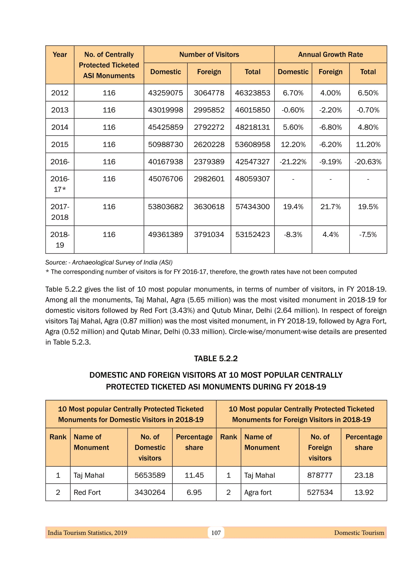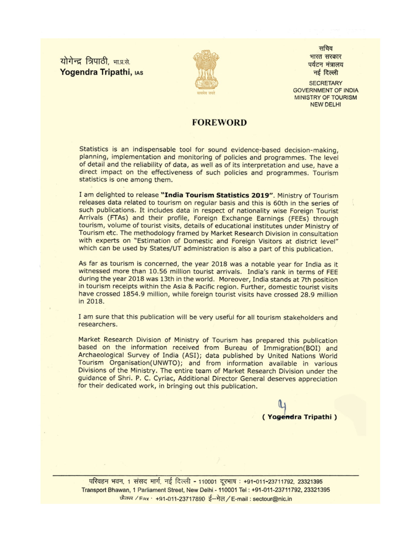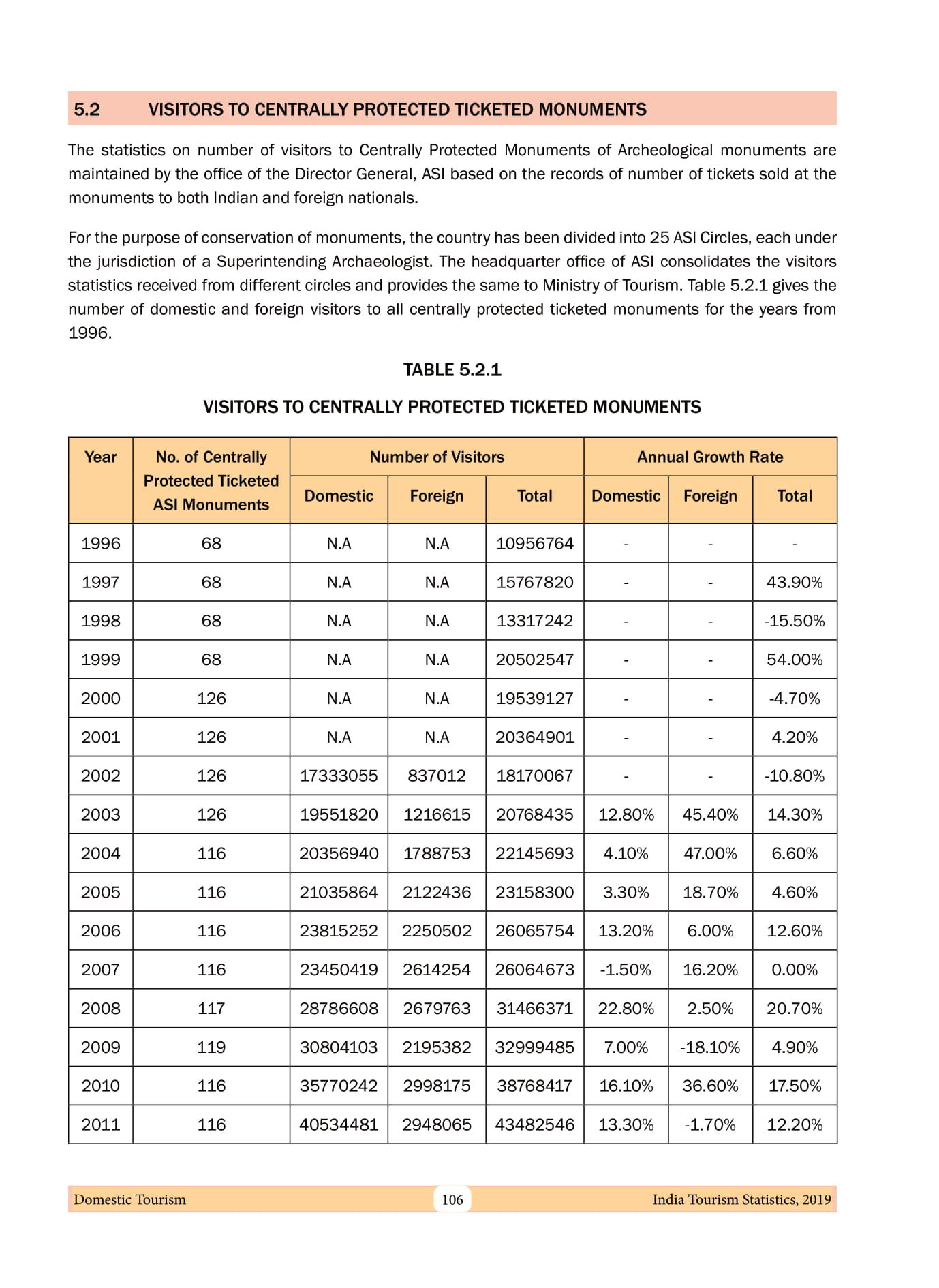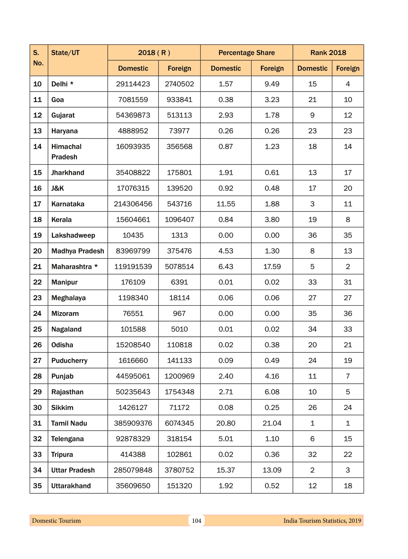 印度旅游部发布了“2019年印度旅游统计数据”。2018年,印度外国游客数量从2017年的1004万人次增加到1056万。2018年外国游客入境数量比2017年增长5.2%,2017年比2016年增长14.0%。