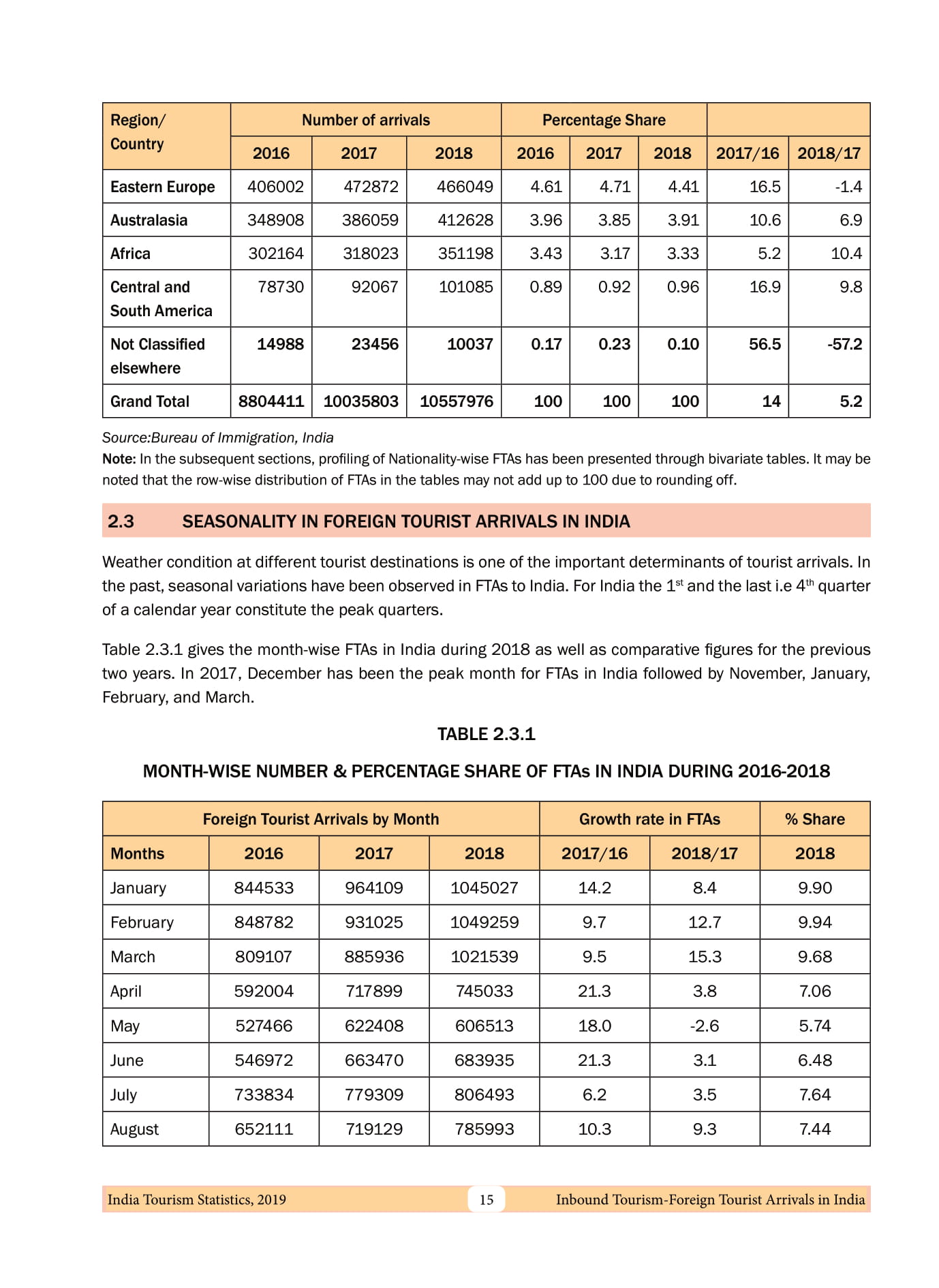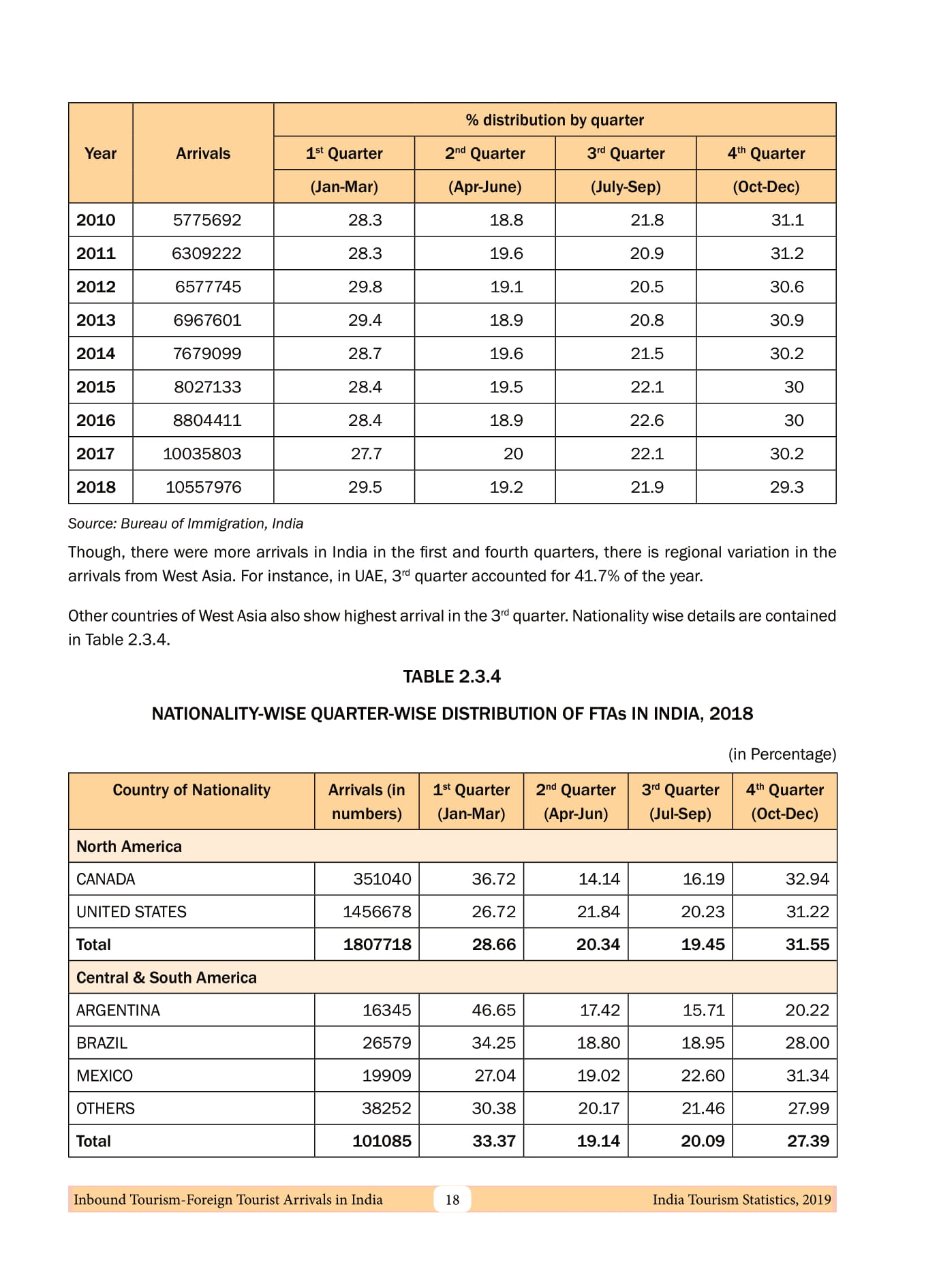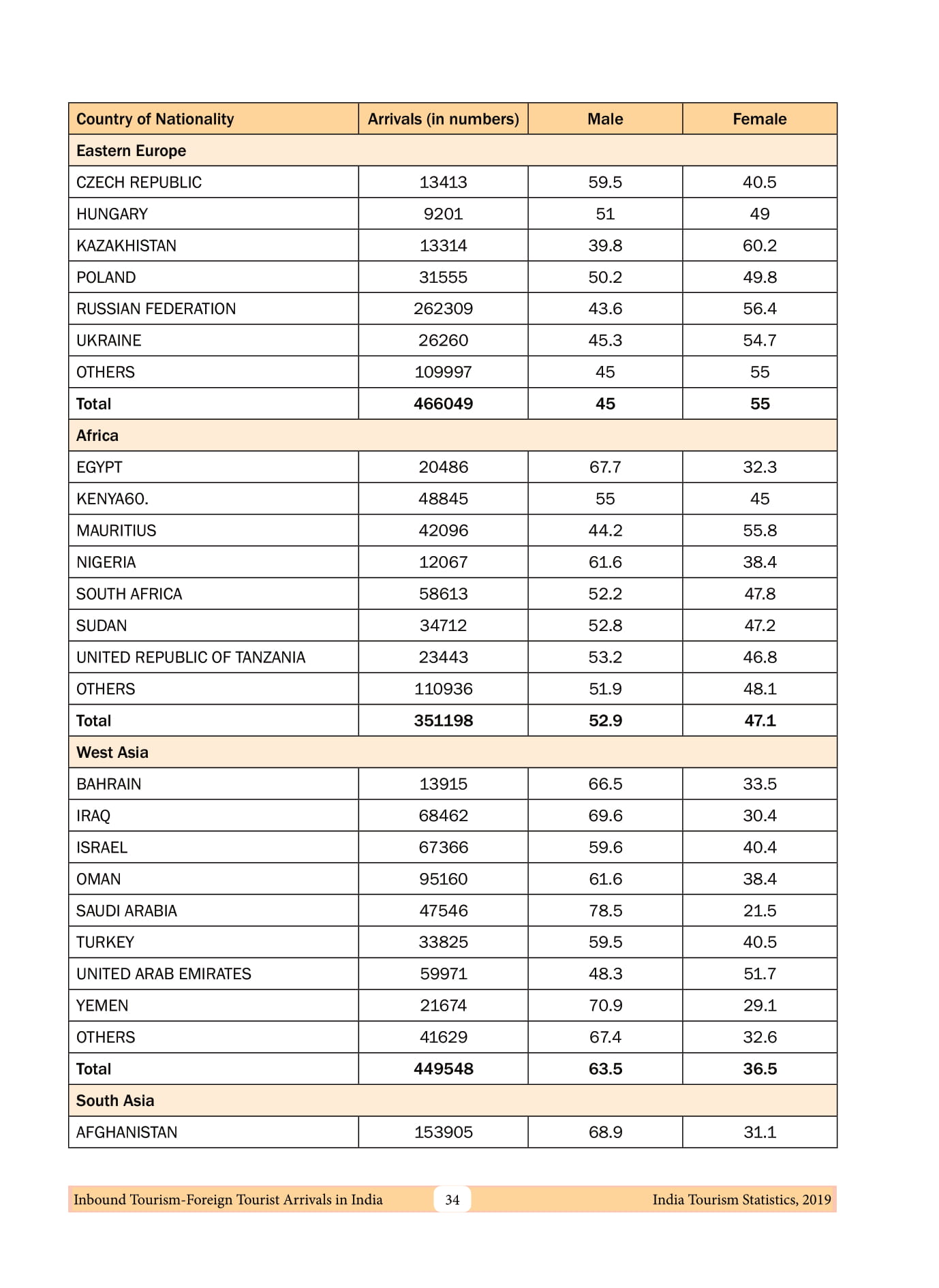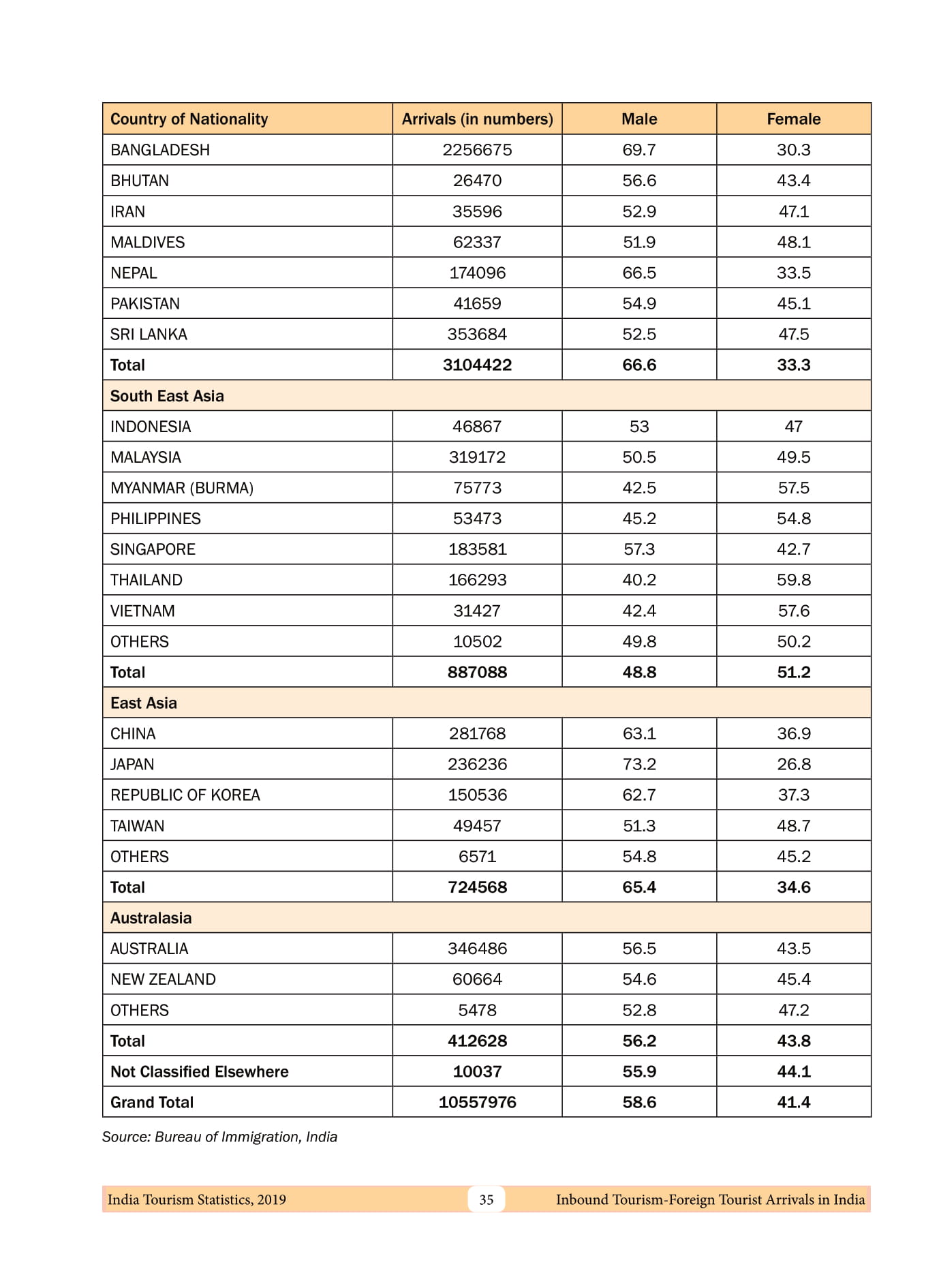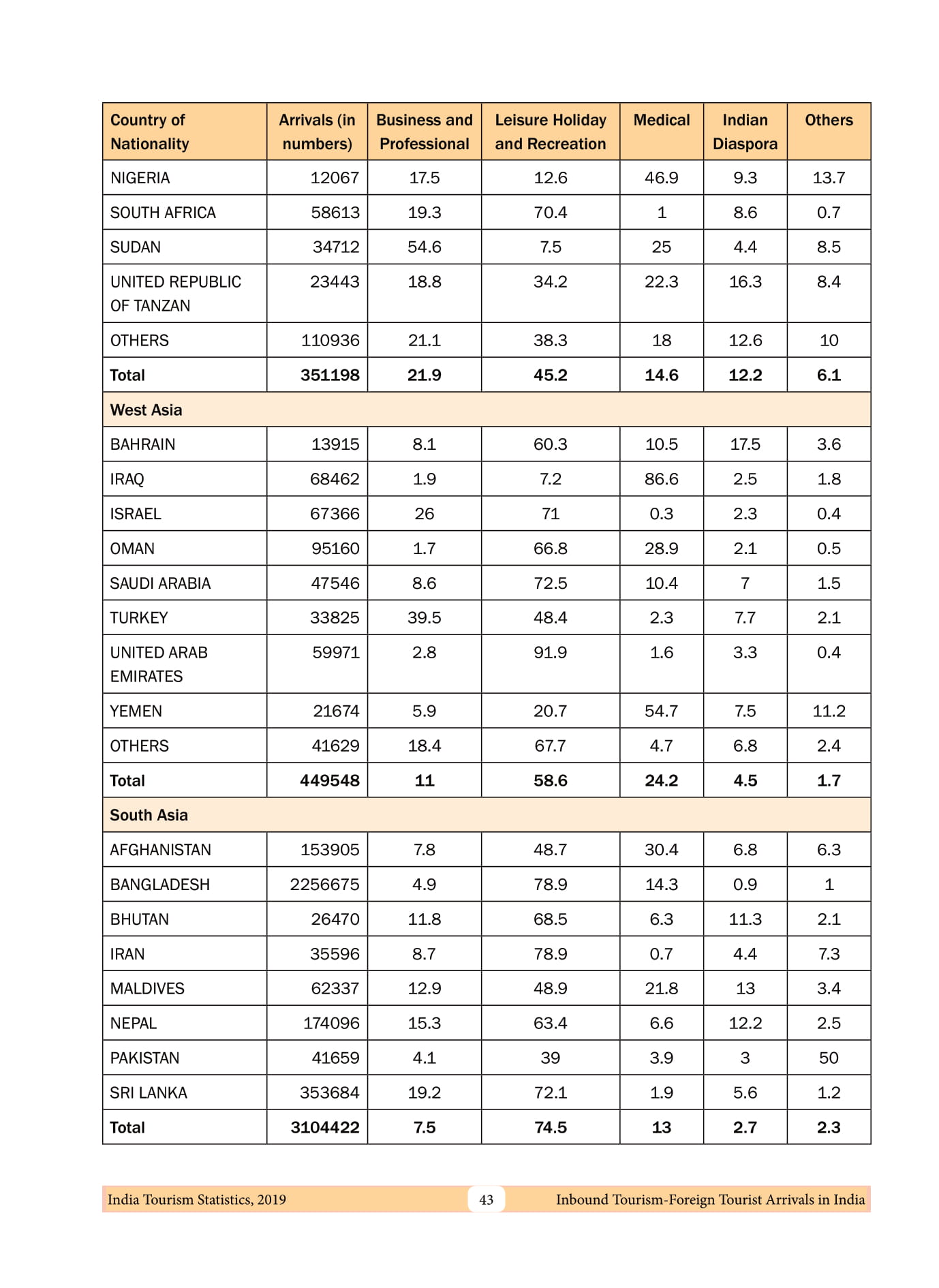 约79.6%的外国游客通过空中进入印度,其次是陆路(19.6%)和海路(0.8%)。德里和孟买机场约占印度外国游客总数的44.5%。2018年印度外国游客前15大来源地市场是孟加拉国,其次是美国、英国、斯里兰卡、加拿大、澳大利亚、马来西亚、中国、德国、俄罗斯、法国、日本、新加坡、尼泊尔和泰国。2018年,前15个国家约占印度外国游客总数的75.33%。