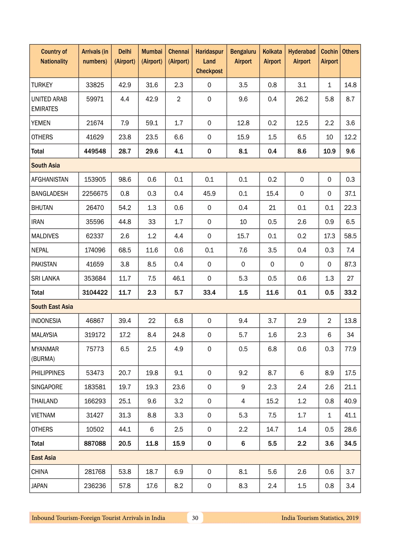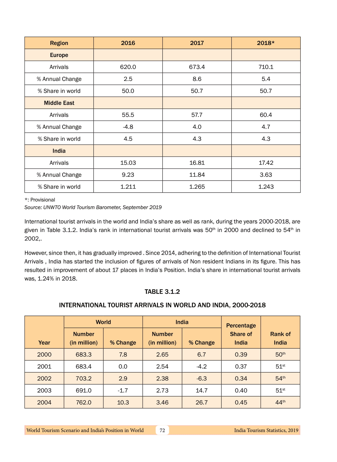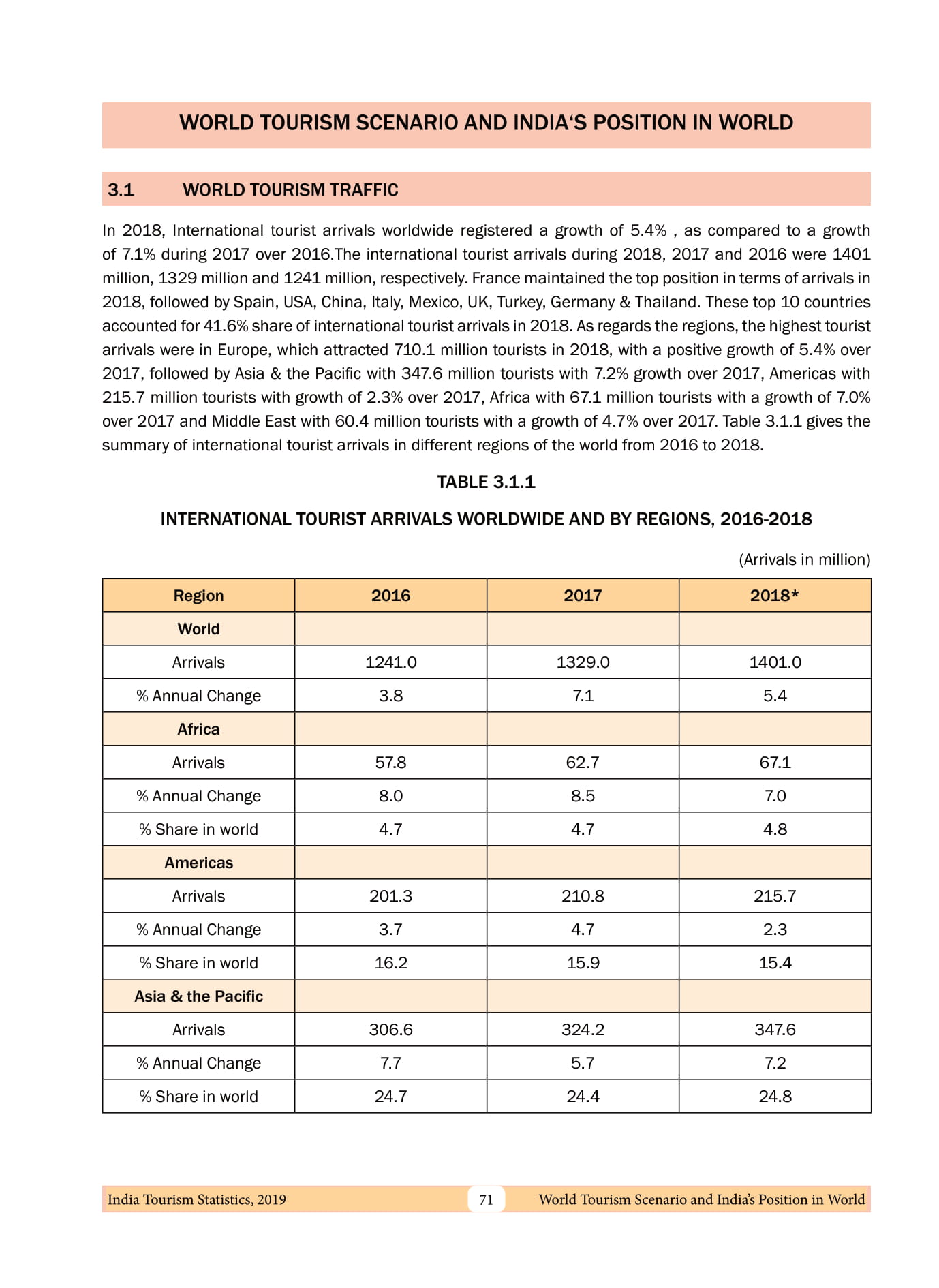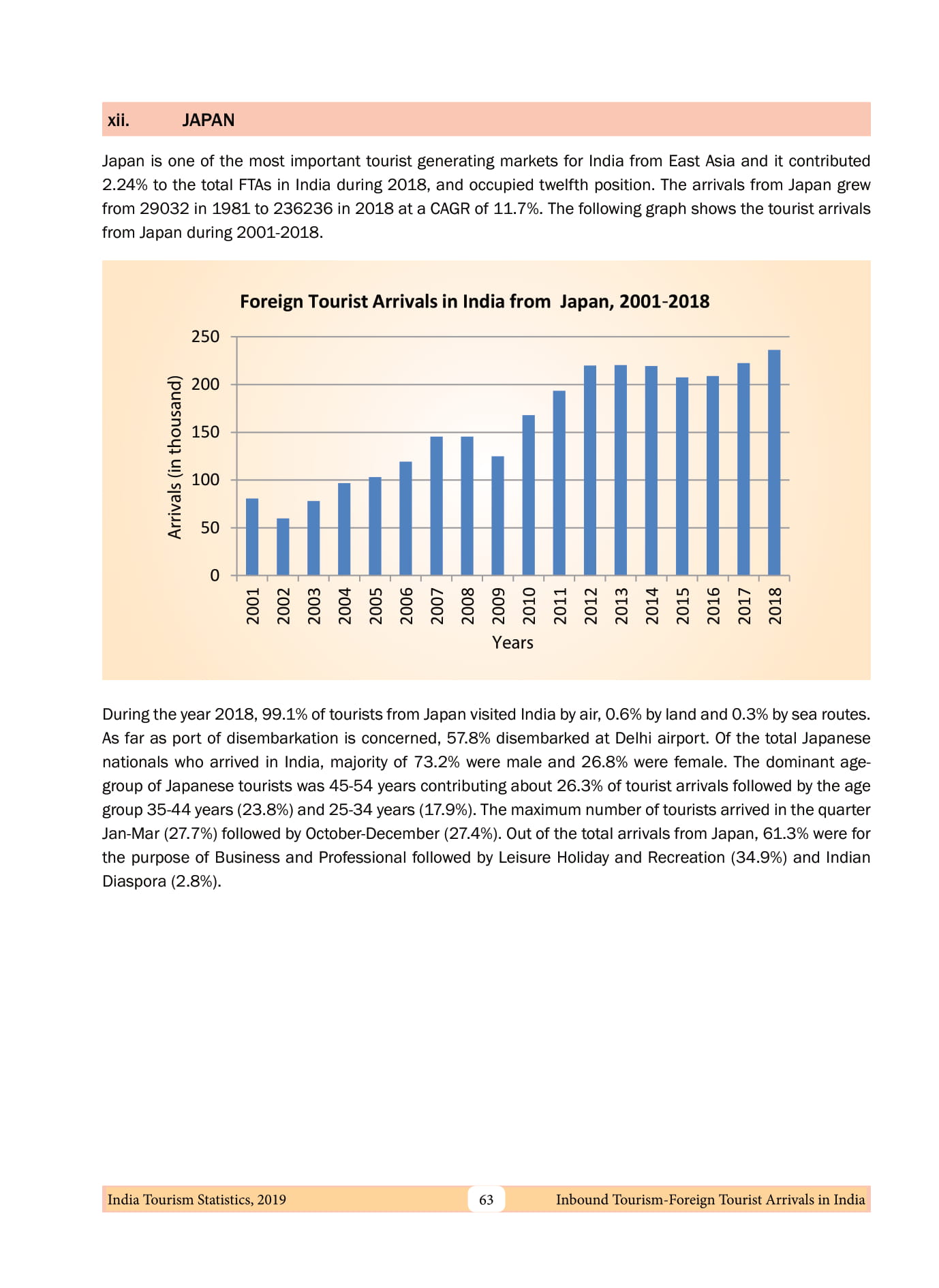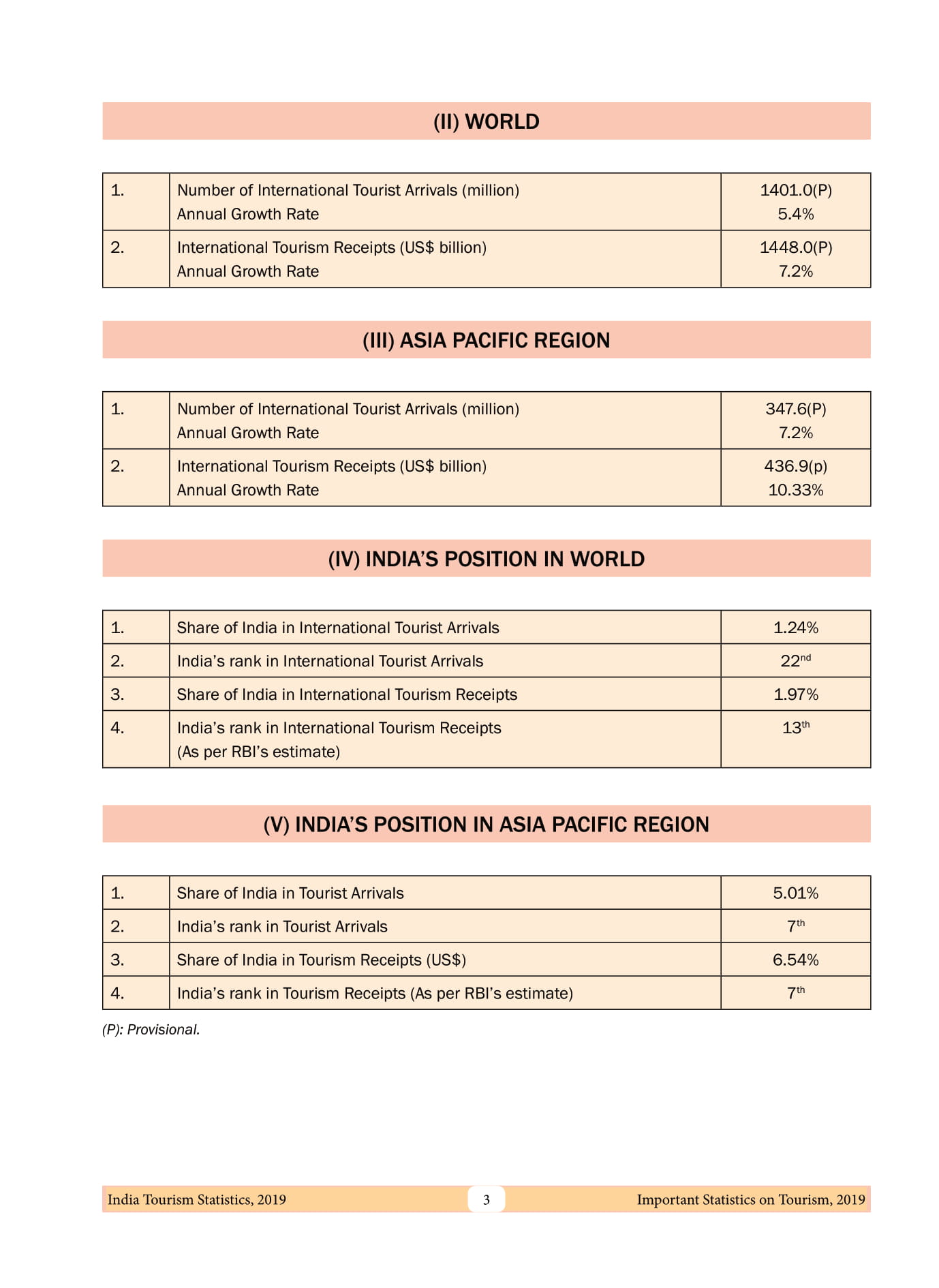 2018年印度在国际游客中的份额为1.2%。2018年抵达亚太地区的国际游客中有5.0%来自印度,排名第7。