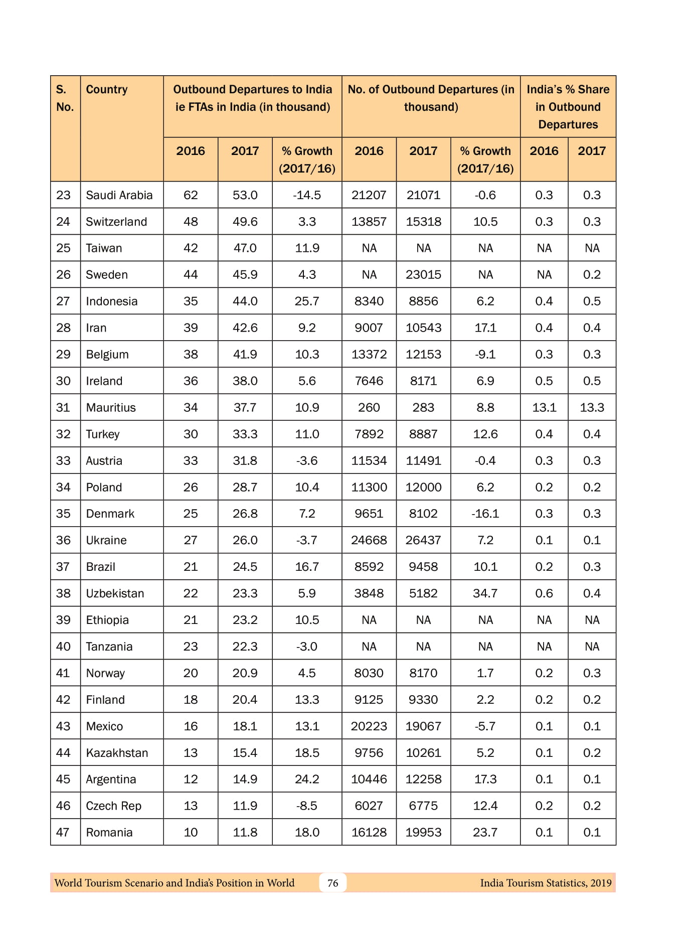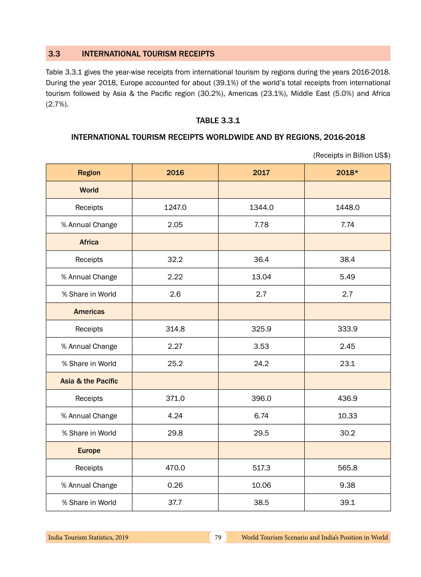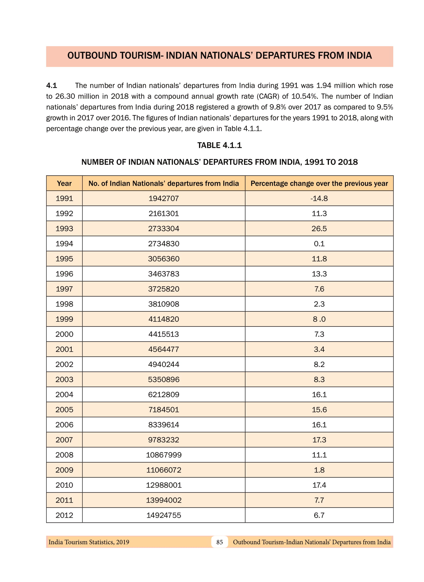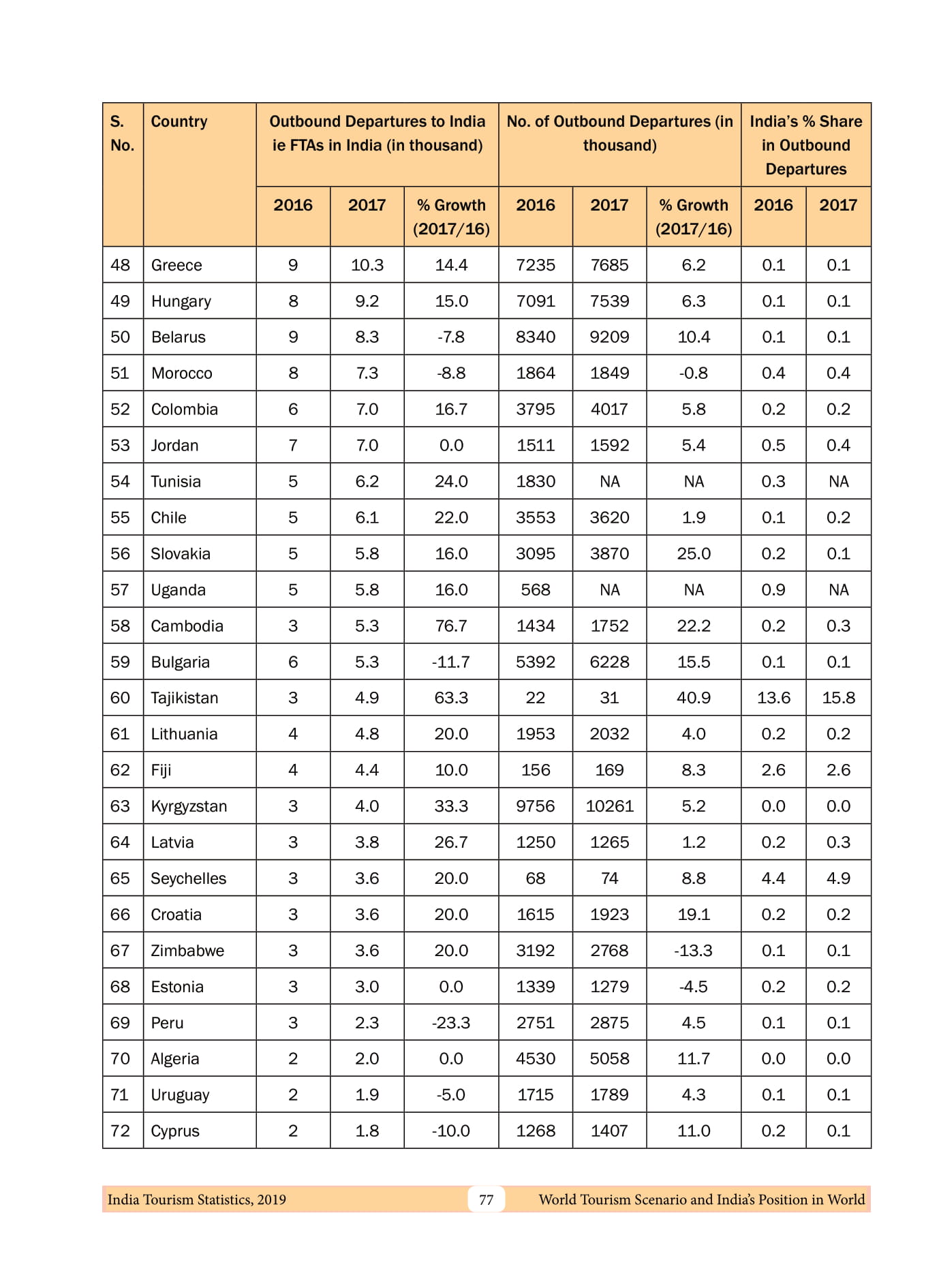 2018年印度在国际游客中的份额为1.2%。2018年抵达亚太地区的国际游客中有5.0%来自印度,排名第7。