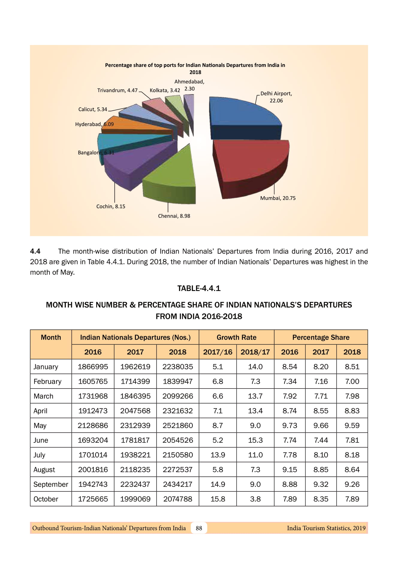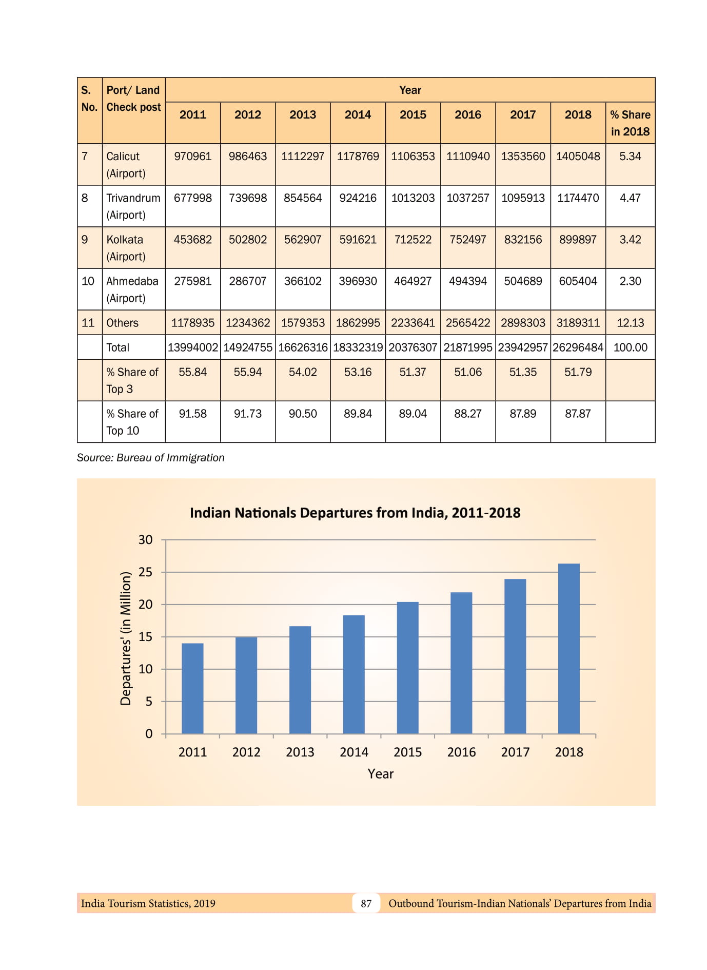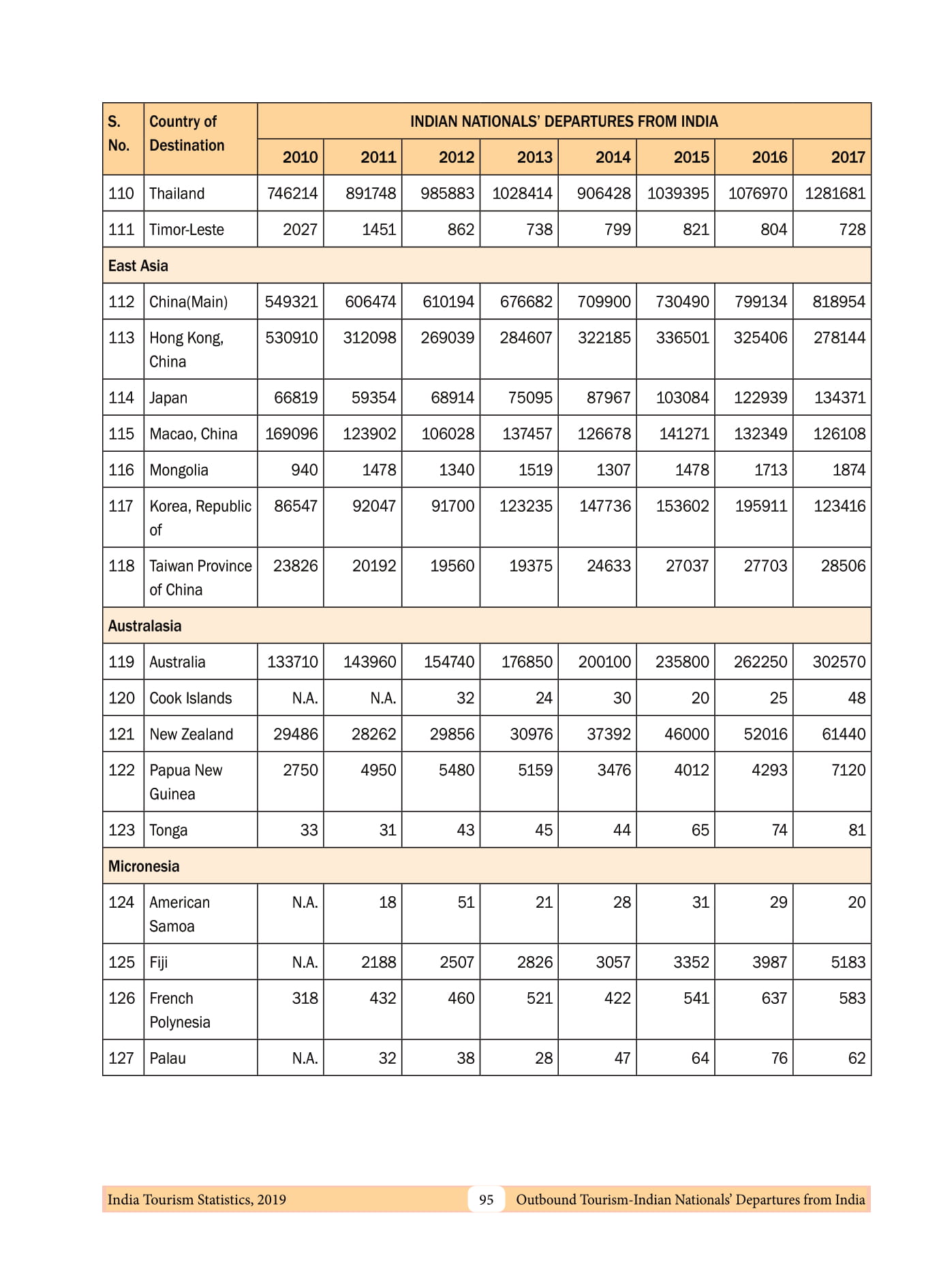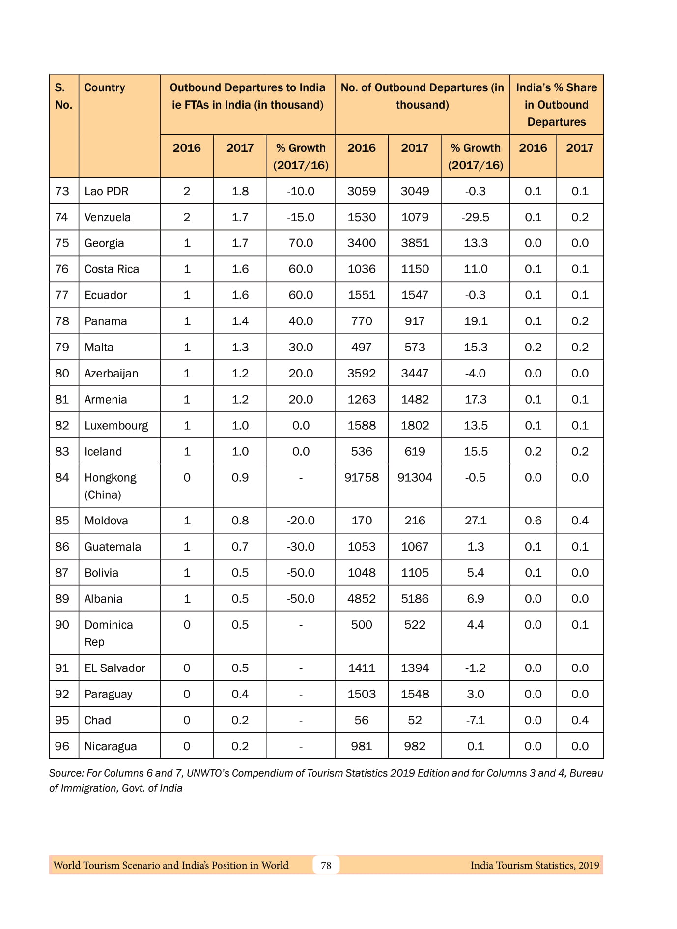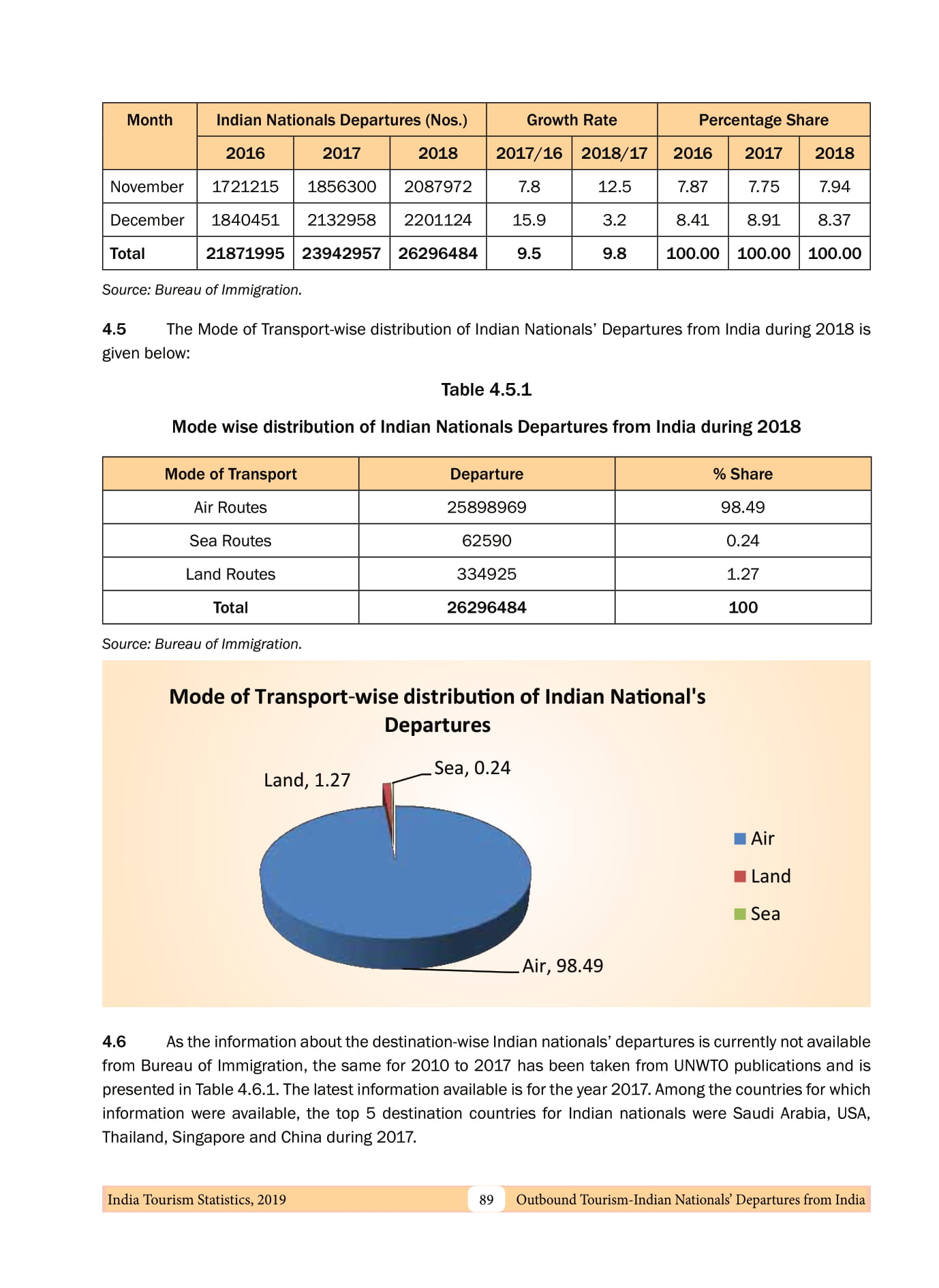 2018年印度在国际游客中的份额为1.2%。2018年抵达亚太地区的国际游客中有5.0%来自印度,排名第7。