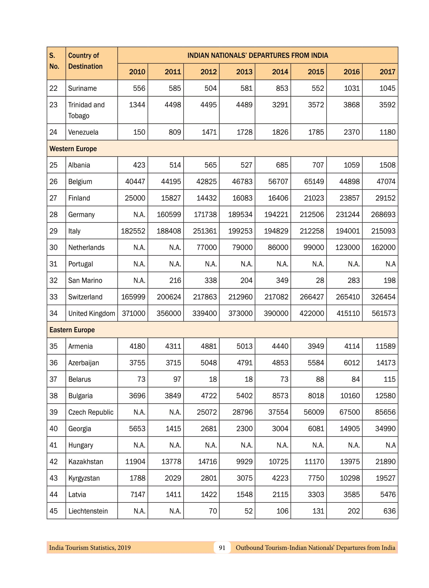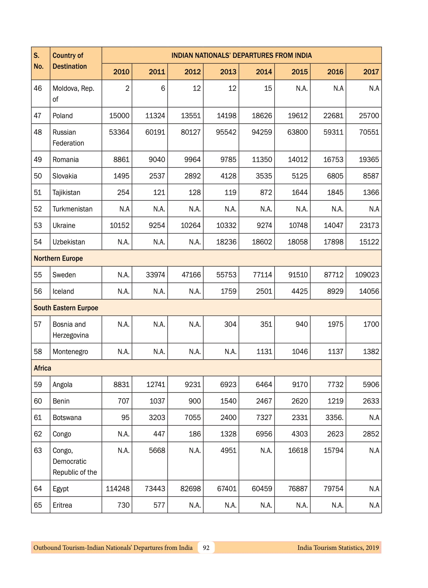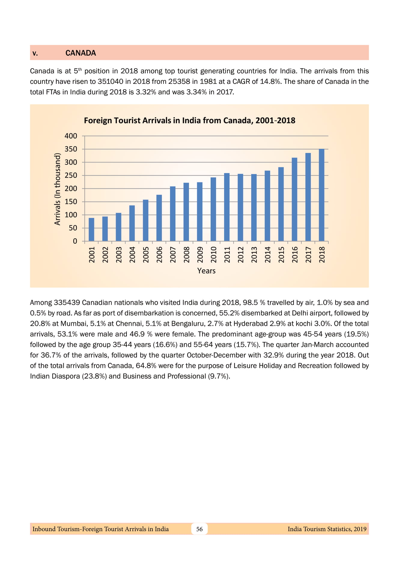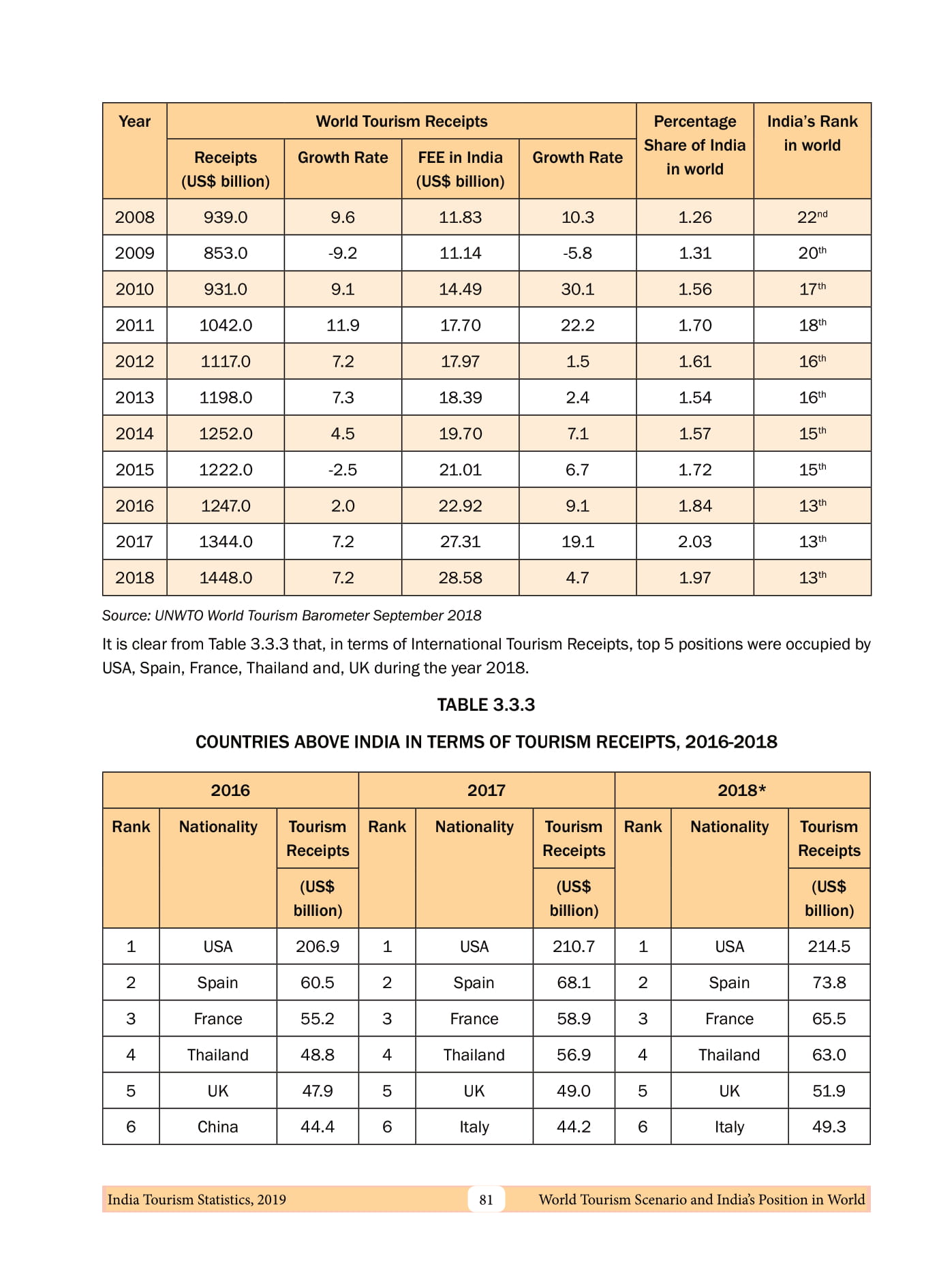 2018年,在印度最大的旅游来源国中,中国是第八大市场,占总入境人数的2.67%。1981年,来自中国的入境人数仅为1371人,2018年增长到281768人,复合年均增长率为32.4%。