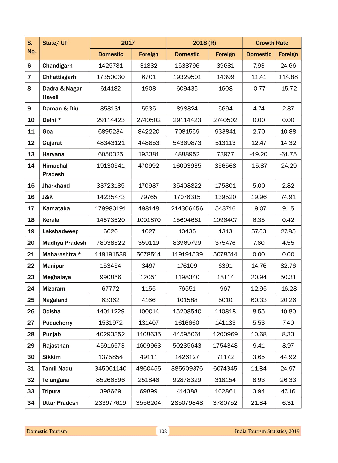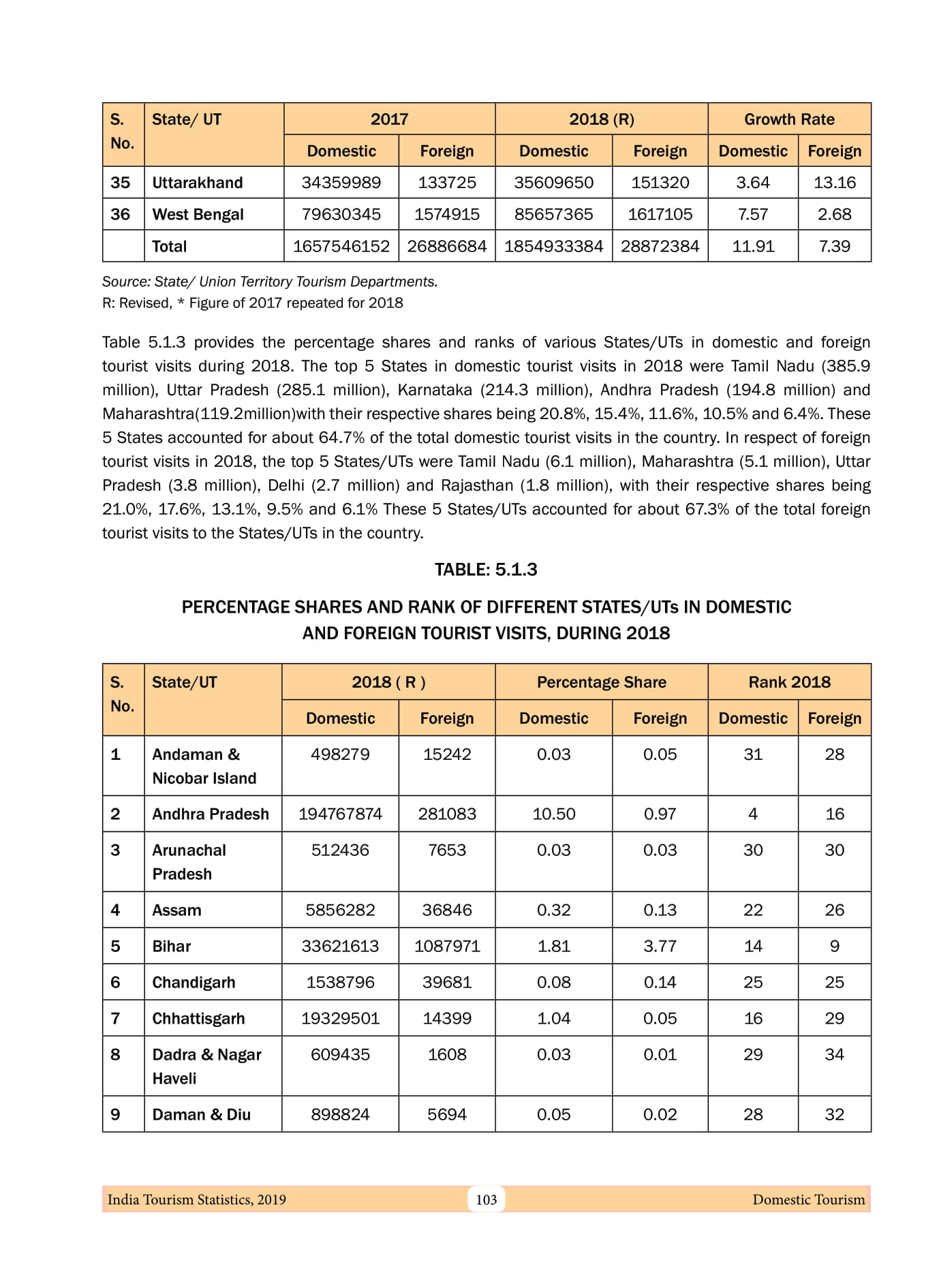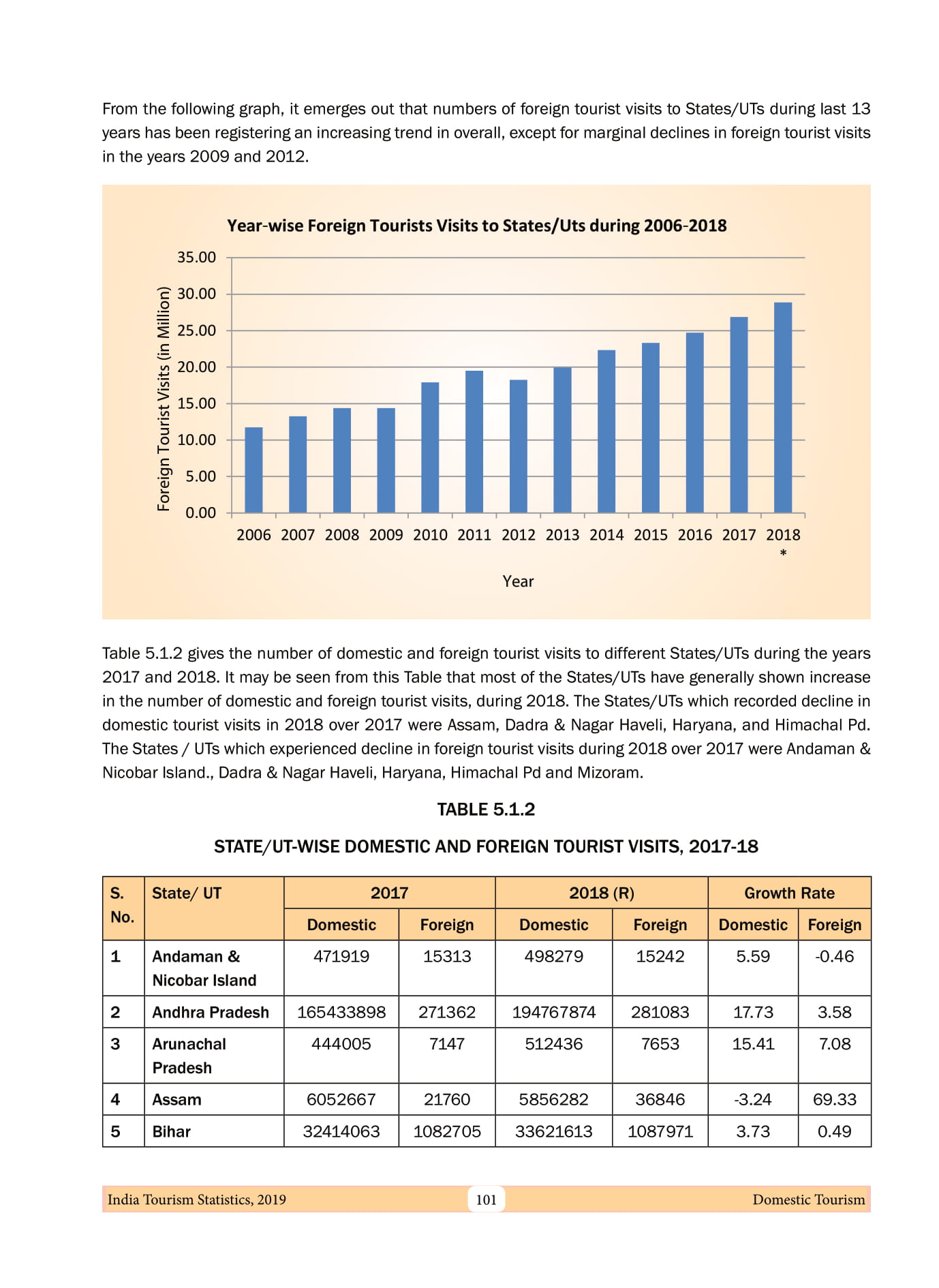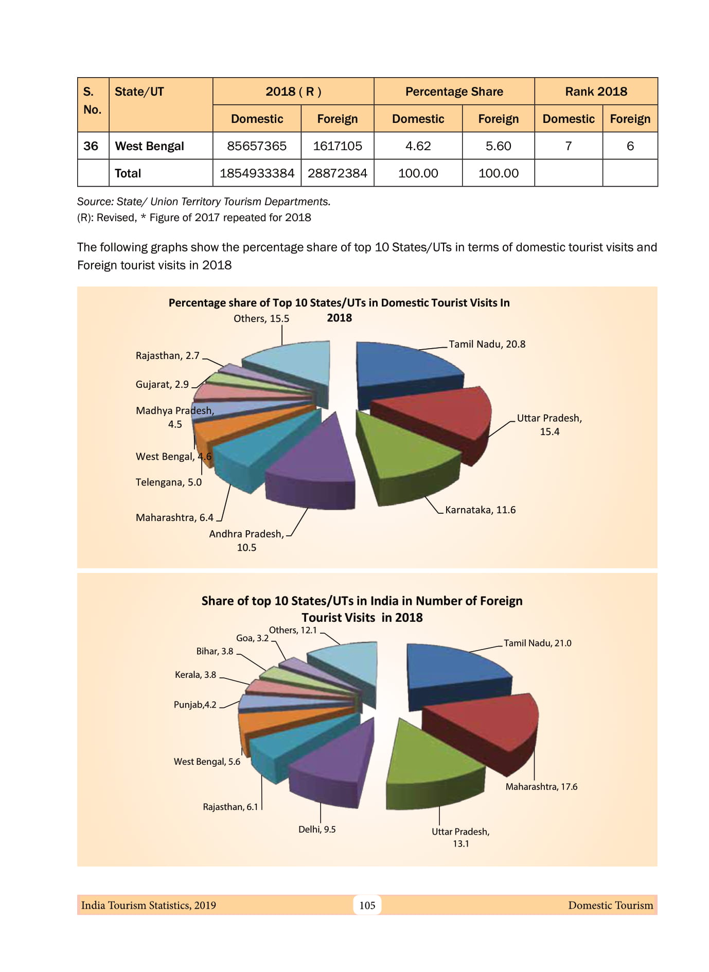 2018年印度国内旅游人次为1.854亿人次,2017年为1.657亿人次,增长率为11.9%。