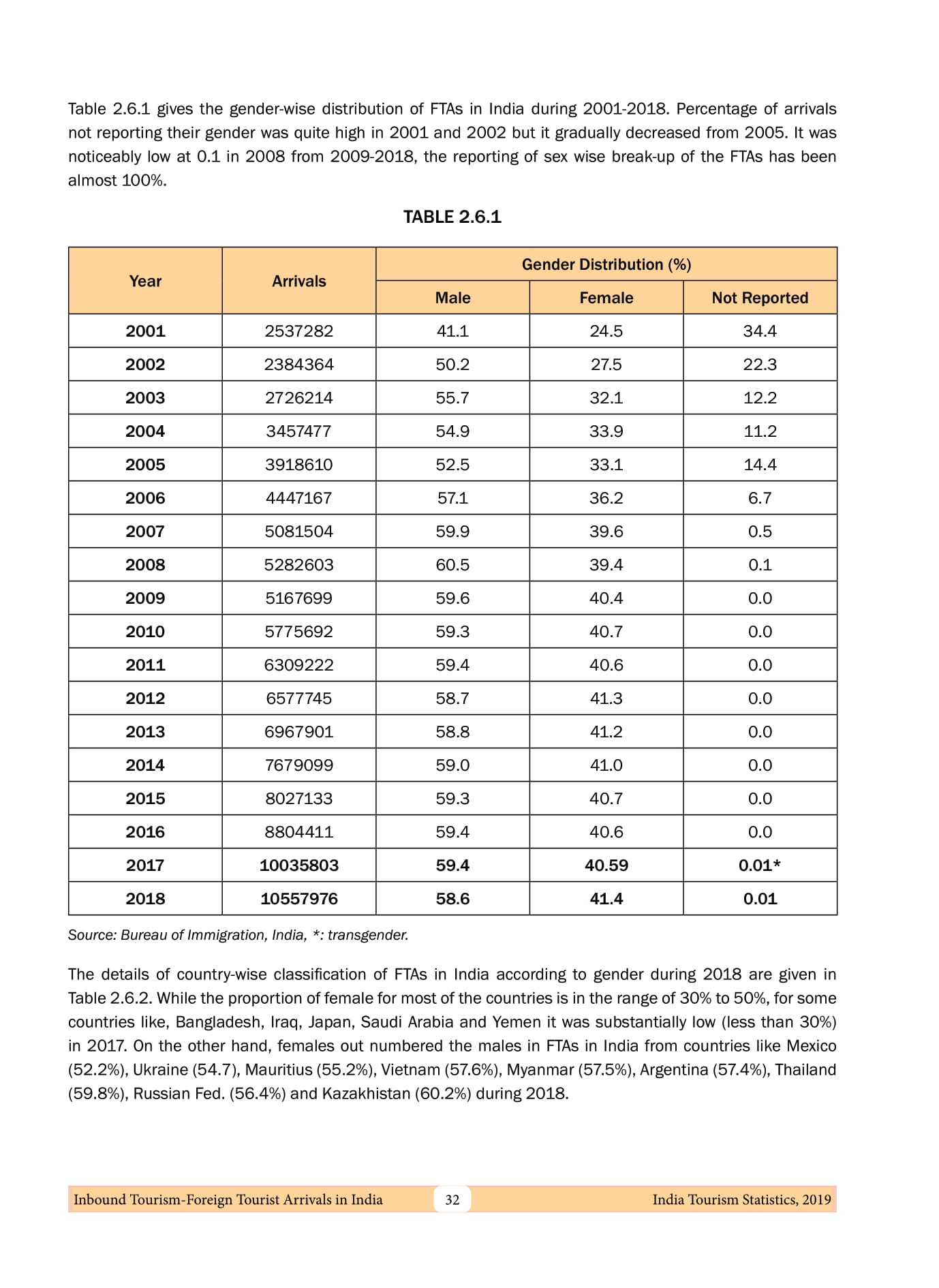 印度外国游客从1981年的128万人次继续增长到1991年的168万人次、2001年的254万人次,2018年达到1056万人次。2018年,印度外国游客比2017年增长5.2%。2001年至2018年,印度外国游客的复合年增长率(CAGR)为8.75%。
