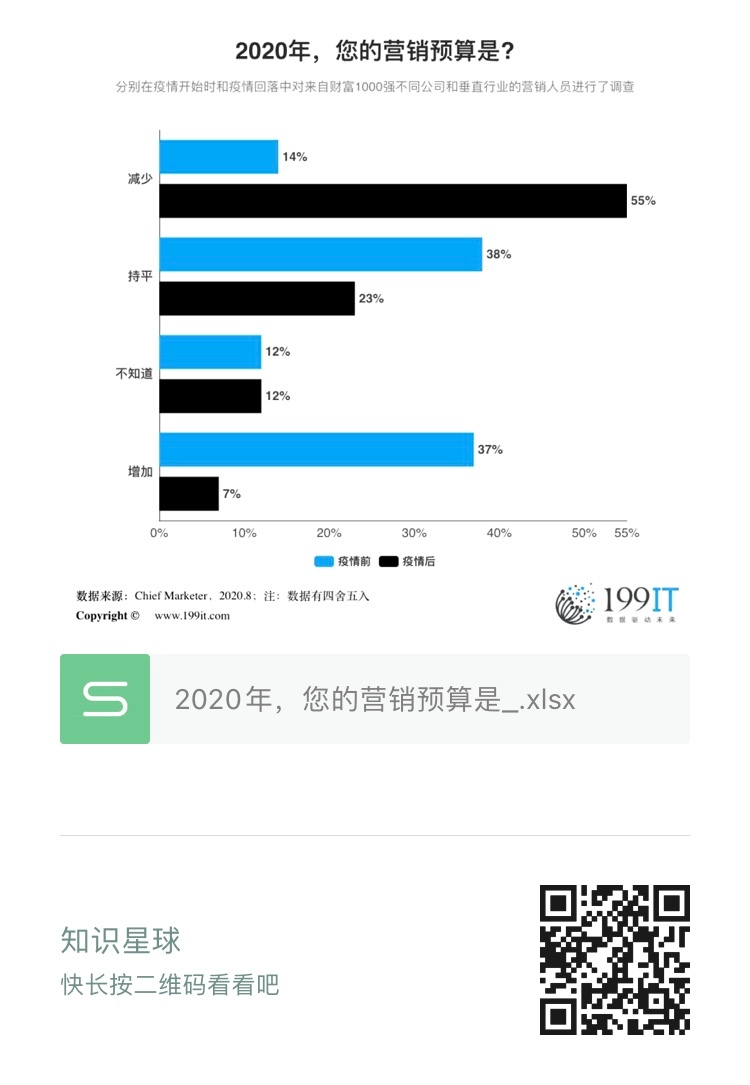 2020年,您的营销预算是?(附原数据表) 更多阅读:哪些方面的营销预算2020年将获得比2019年更多的资金?(附原数据表) 用于现场活动的资金重新分配到营销预算的哪些方面?(附原数据表) 您的营销预算中哪些方面需要花费最多?(附原数据表) 您的营销预算的哪些方面提供了最多的ROI?(附原数据表) Econsultancy:今年超过半数营销人员将增加社交媒体和内容营销预算AdMaster&R3:2012年中国汽车广告主将增加超过32%营销预算投放在数字媒体IPA Bellwether:2020年第三季度英国营销预算继续缩减Digiday:2022年Instagram营销预算和信心调查Braze:2021年客户参与报告CMI:2021年B2B内容营销报告SCOPEN:数字占英国营销预算的40%以上TheDrum:在家工作为主题的Spotify播放列表增长1400%以上Chief Marketer:COVID-19营销展望报告社会化媒体广告现状–数据信息图Ignite Visibility:2021-2023年广告支出调查报告
