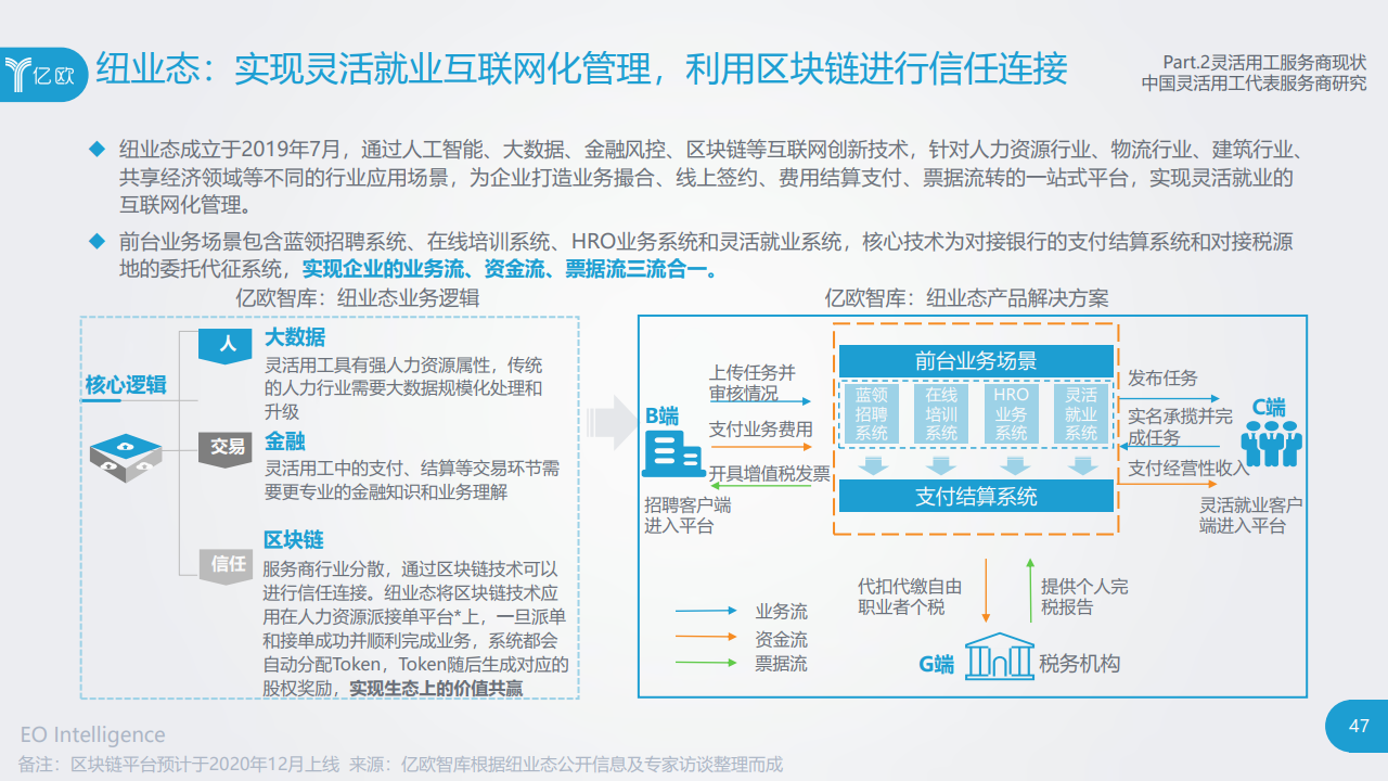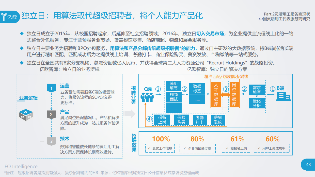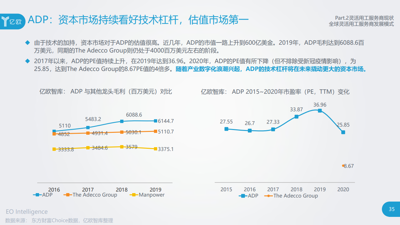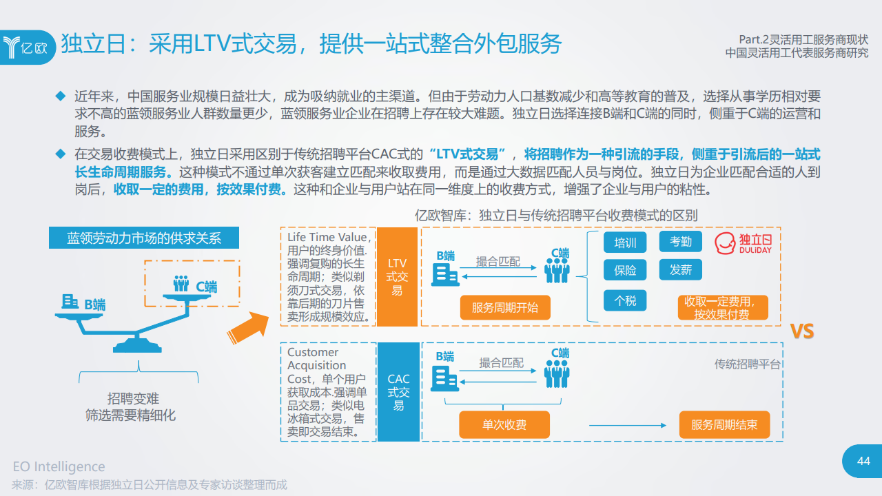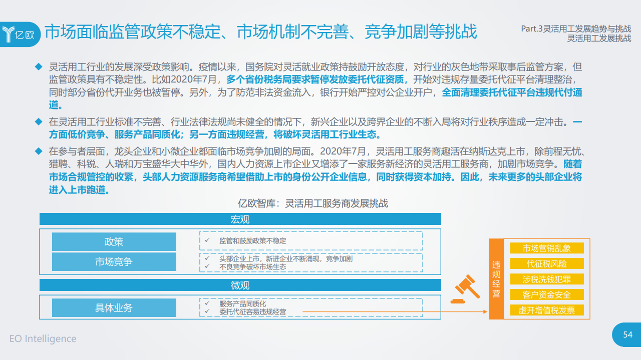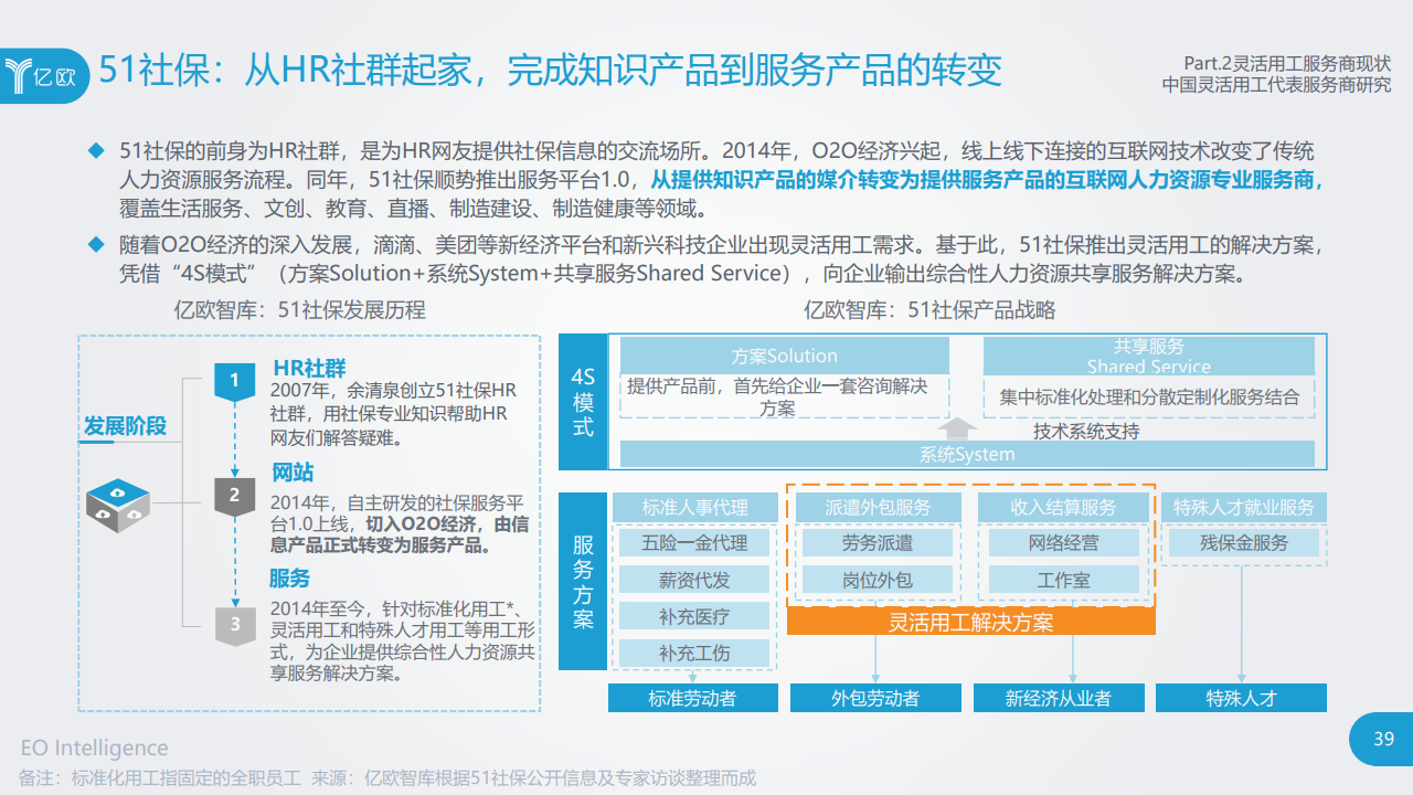 亿欧智库基于对全球灵活用工行业的大量桌面研究,以及对行业专家的访谈,撰写此份《2020年灵活用工行业研究报告》。报告从灵活用工的定义出发,回溯灵活用工行业的发展背景和历史,重点研究服务商的业务模式,并分析全球龙头企业The Adecco Group和ADP的发展模式与变化,最后落脚于中国灵活用工服务商的落地实践,探索行业未来发展趋势。